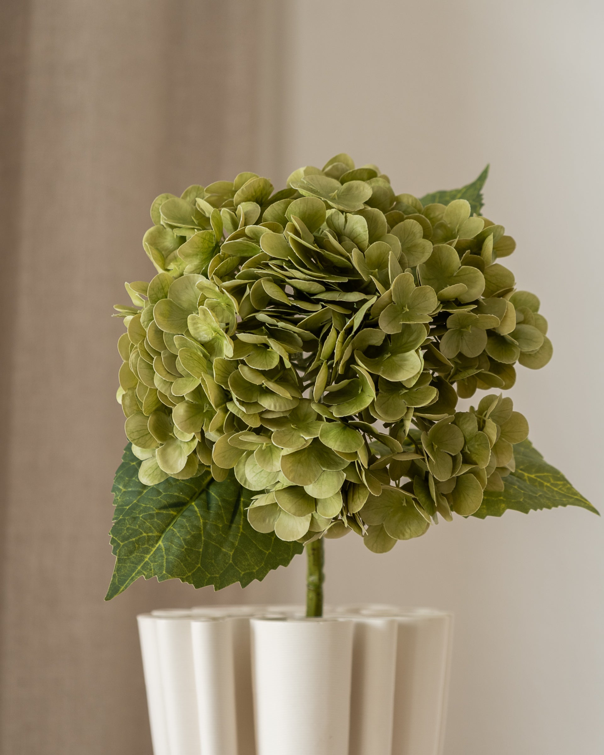 Hydrangea Flower Light Moss Green er en delikat variant av den klassiske hortensiaen, med en lysere mosgrønn farge som tilfører et mykt og naturlig preg til rommet. Denne kunstige hortensiaen er ideell for å skape en rolig og harmonisk stemning i buketter og dekorasjoner.