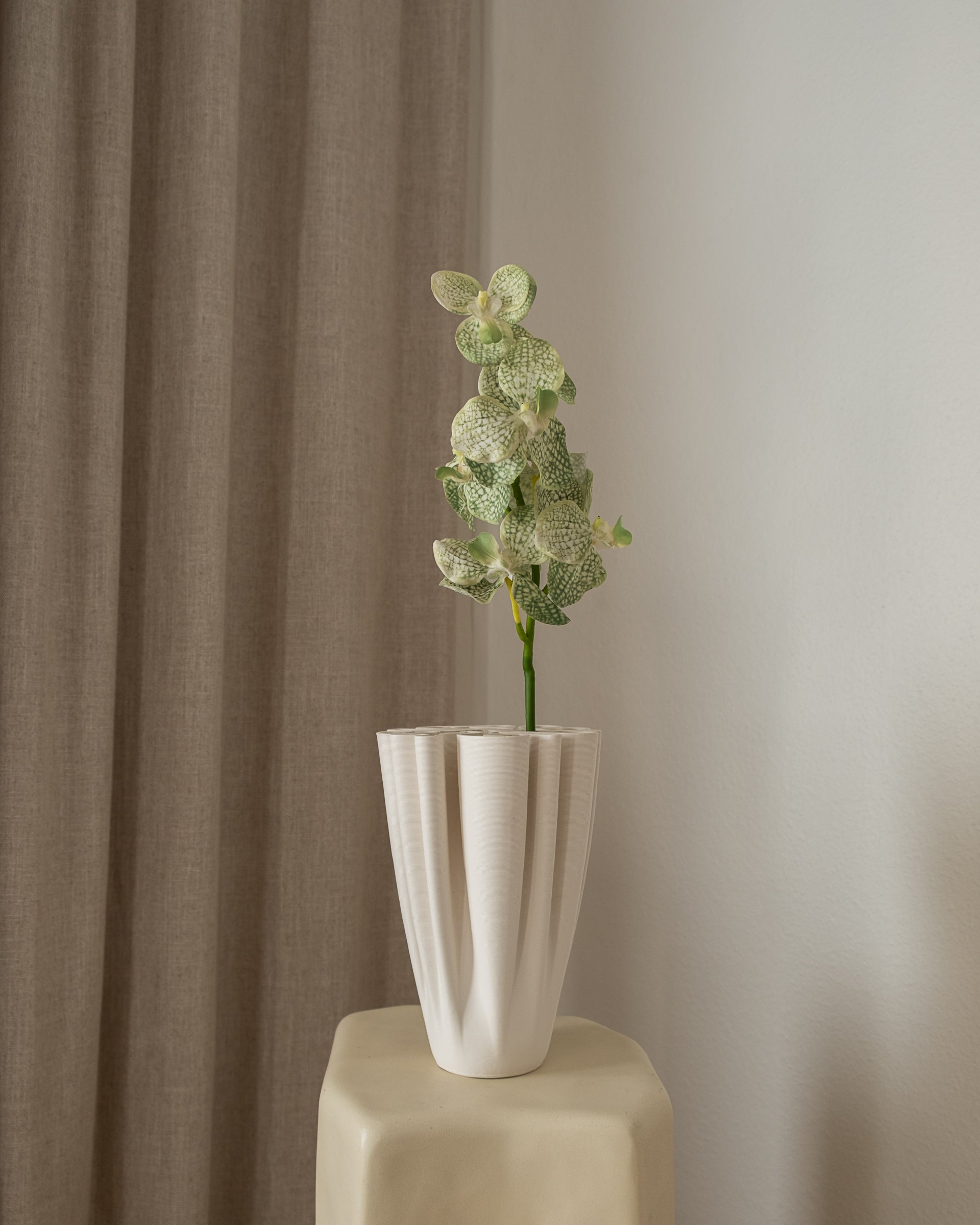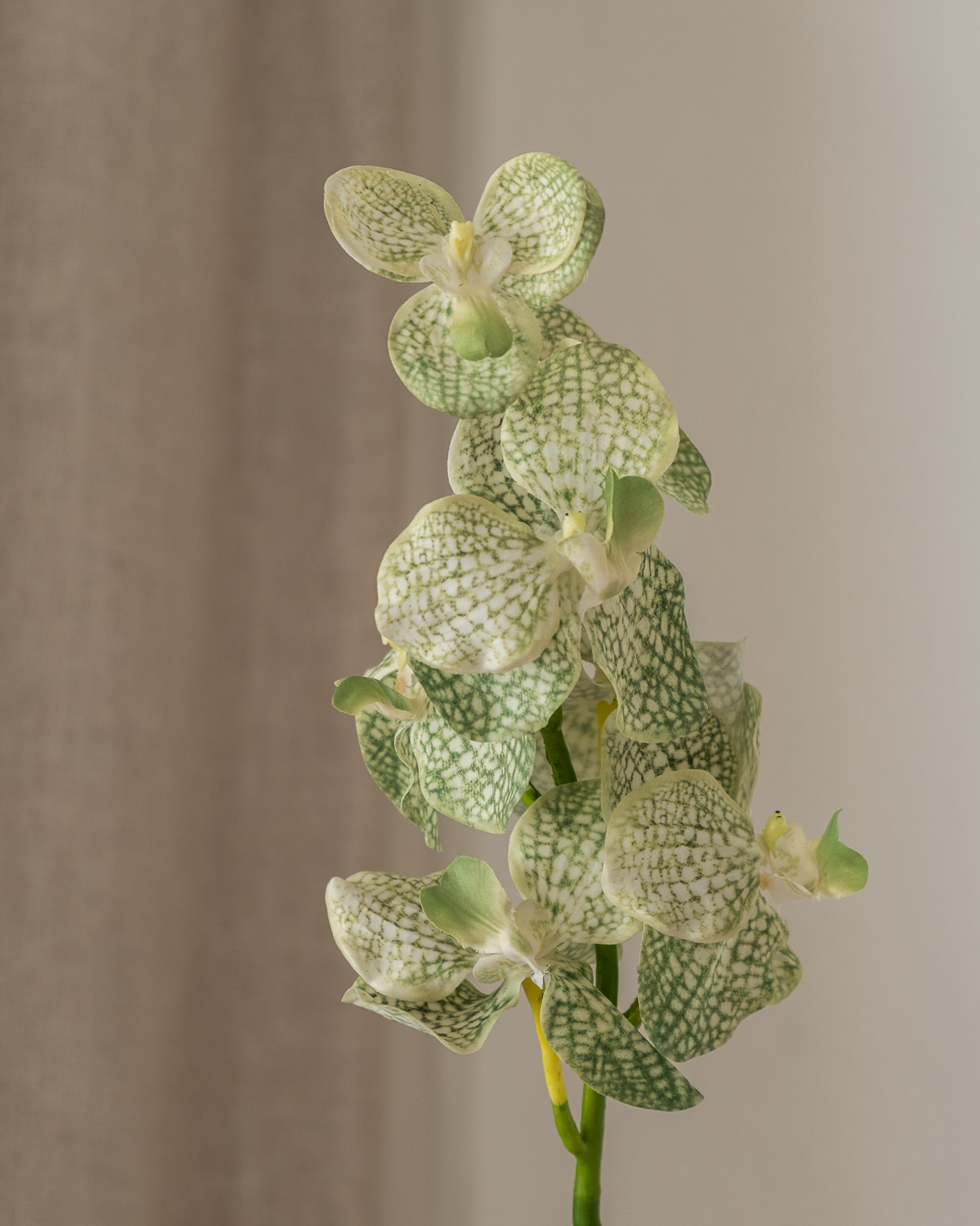 Kunstig Orkidé med 7 Hoder er en elegant og detaljert blomst som tilfører en sofistikert touch til ethvert rom. Denne livaktige orkidéen er perfekt for å skape et imponerende inntrykk, enten den står alene eller er en del av en bukett. Med sine 7 vakre blomsterhoder, hver med nøyaktig farge og detaljer, gir denne kunstige orkidéen et autentisk utseende som varer i lang tid.