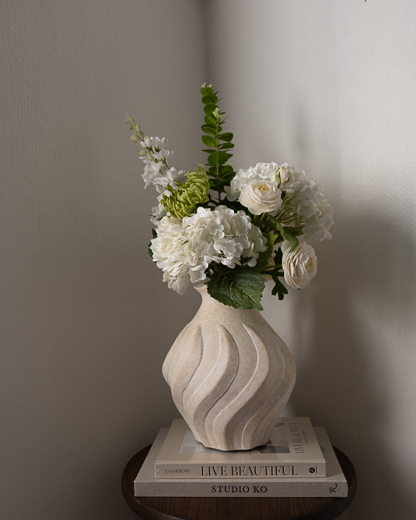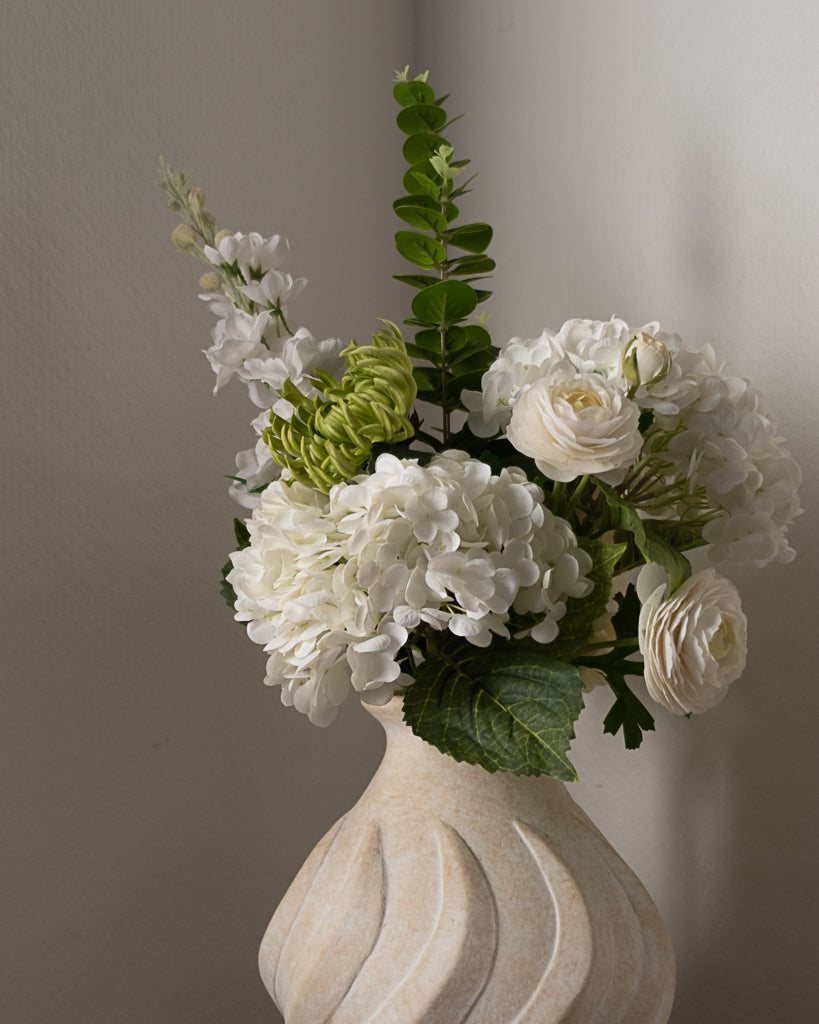This elegant and popular bouquet features artificial flowers in a beautiful combination of soft pink and fresh green, creating a sense of everyday luxury for any room in your home. Its delicate and sophisticated color palette makes it a perfect addition to all spaces.