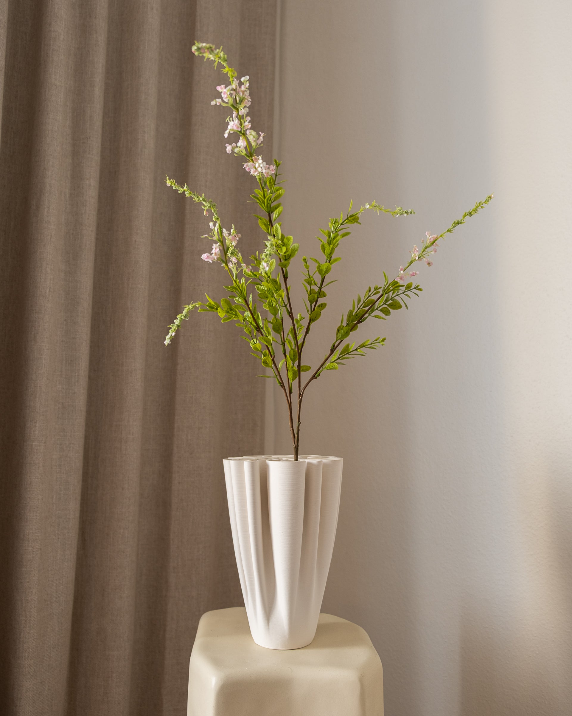 This Wild Flower artificial plant features an elegant and natural design, perfect for adding a touch of charm and tranquility to any space. With a height of 85 cm, it brings a refreshing, earthy feel to your home, whether displayed alone or combined with other plants for a unique arrangement.