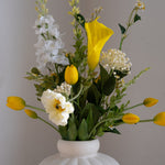 Brighten up any space with the Sunny Meadow Bouquet, a vibrant artificial floral arrangement in cheerful cream and yellow tones.