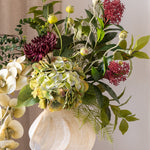 Den fungerer som et markant statement alene, men kan også kombineres med flere buketter for en større dekorasjon. Stilkenes lengde gjør at de kan både klippes og bøyes, slik at buketten kan tilpasses ulike høyder og uttrykk.