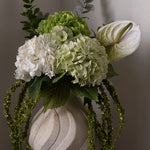 This classic and elegant bouquet features a harmonious blend of artificial flowers in soft green and white tones, creating a sense of everyday luxury for any room in your home. Perfect for adding a touch of sophistication and freshness to your space.