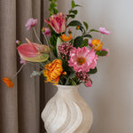Flamingo Bloom Bouquet har en livlig blanding av rosa og oransje nyanser som tilfører energi og farge til ditt hjem. Denne buketten passer perfekt til rom som trenger en frisk og tropisk touch.