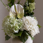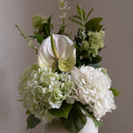Bring et friskt preg av naturen inn i hjemmet ditt med Soft Whisper Bouquet, en elegant kunstig blomsterbukett i beroligende lyse grønne og hvite toner. Denne delikate buketten fremkaller naturens fredelige skjønnhet, og skaper en rolig og avslappende atmosfære i ethvert rom. Laget av kunstige blomster av høy kvalitet, gir Soft Whisper varig skjønnhet med minimalt vedlikehold, enten du ønsker å friske opp rommet for våren eller tilføre tidløs eleganse året rundt.