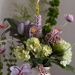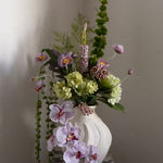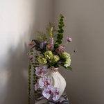 Experience the sophistication of Mauve Breeze, a carefully curated artificial bouquet in soft mauve and lush green tones. This elegant arrangement enhances your space with a calming yet refined floral touch, perfect for those seeking subtle luxury.