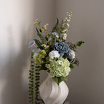 Refresh with Minted Chamomile, an artificial bouquet that combines greens with the gentle hues of blue and chamomile. This arrangement offers a peaceful, natural aesthetic that brings a touch of calm to any room in your home.
