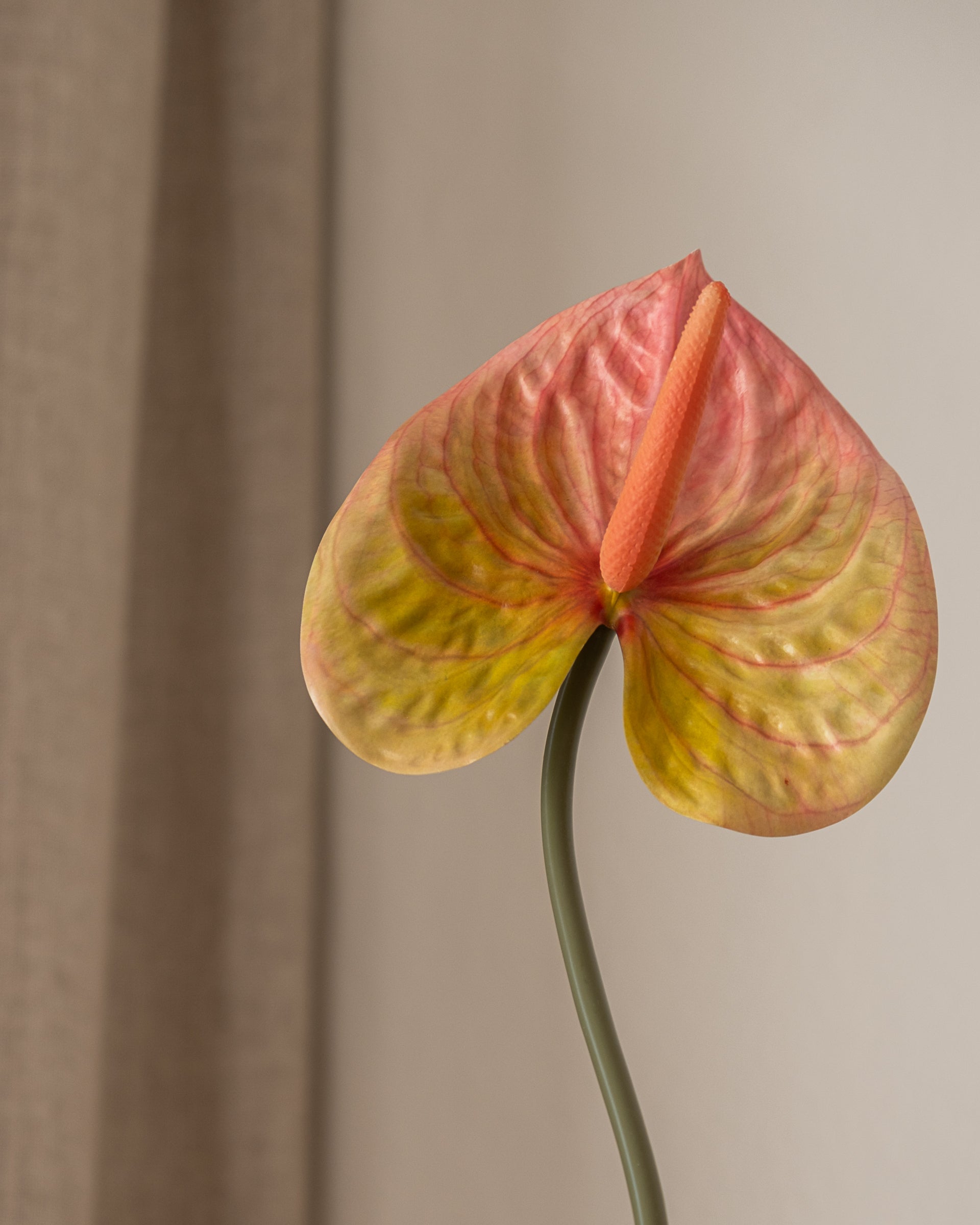 This artificial Anthurium flower features a unique and striking form, perfect for making a bold statement. With a height of 67 cm, it stands out beautifully on its own or when combined with other flowers to create a distinctive bouquet.
