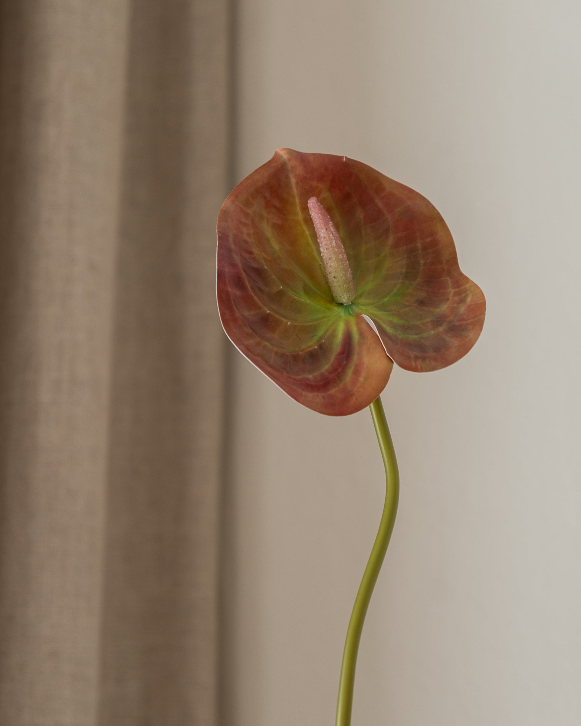 This artificial Anthurium flower features a unique and bold shape with a smaller flower head compared to our standard "Anthurium Flower." It’s perfect for making a statement on its own or combined with other flowers to create a distinctive bouquet.