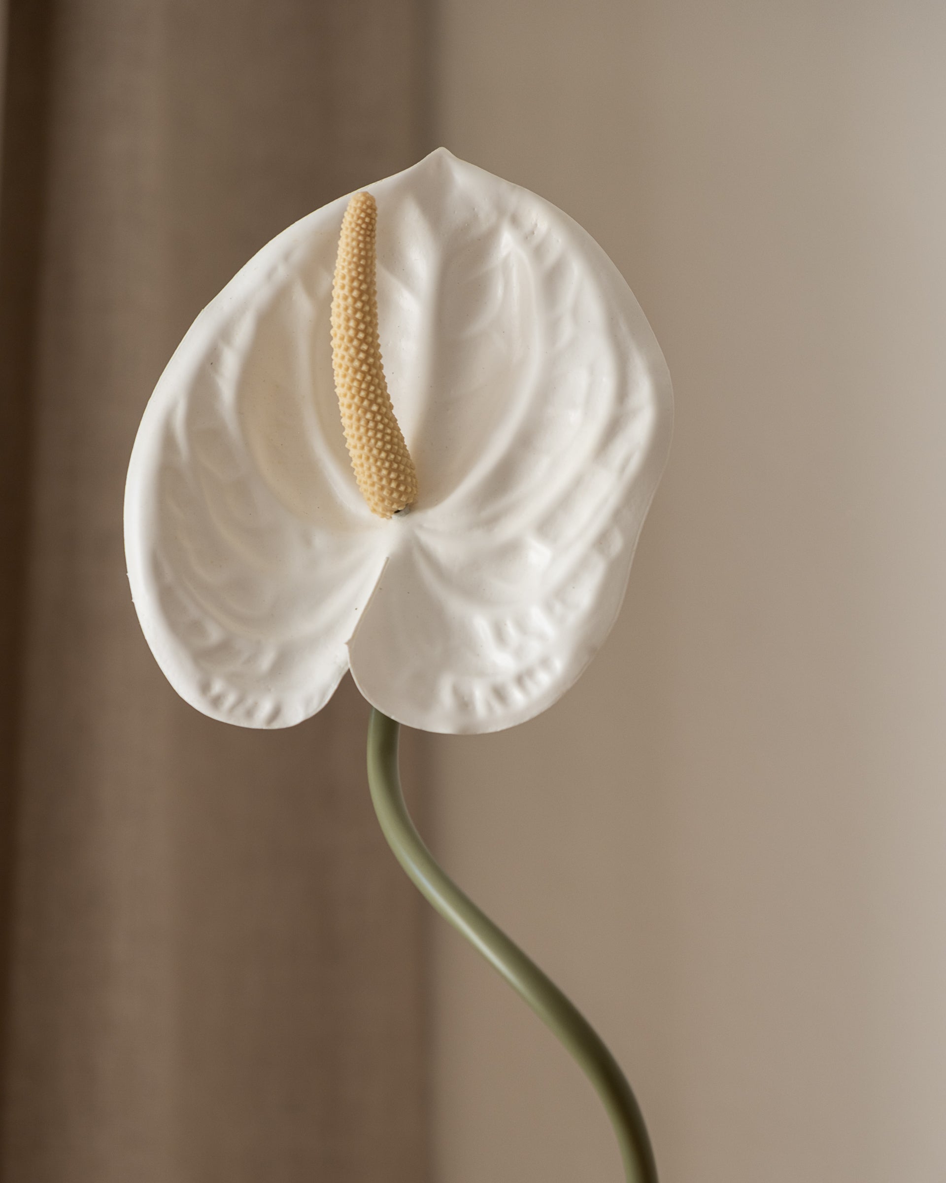 Anthurium er kjent for sin skulpturelle form og blanke, hjerteformede blad. Denne kunstige varianten på 67 cm fanger opp den samme karakteristiske elegansen – en moderne klassiker som setter et sterkt preg i enhver dekorasjon.