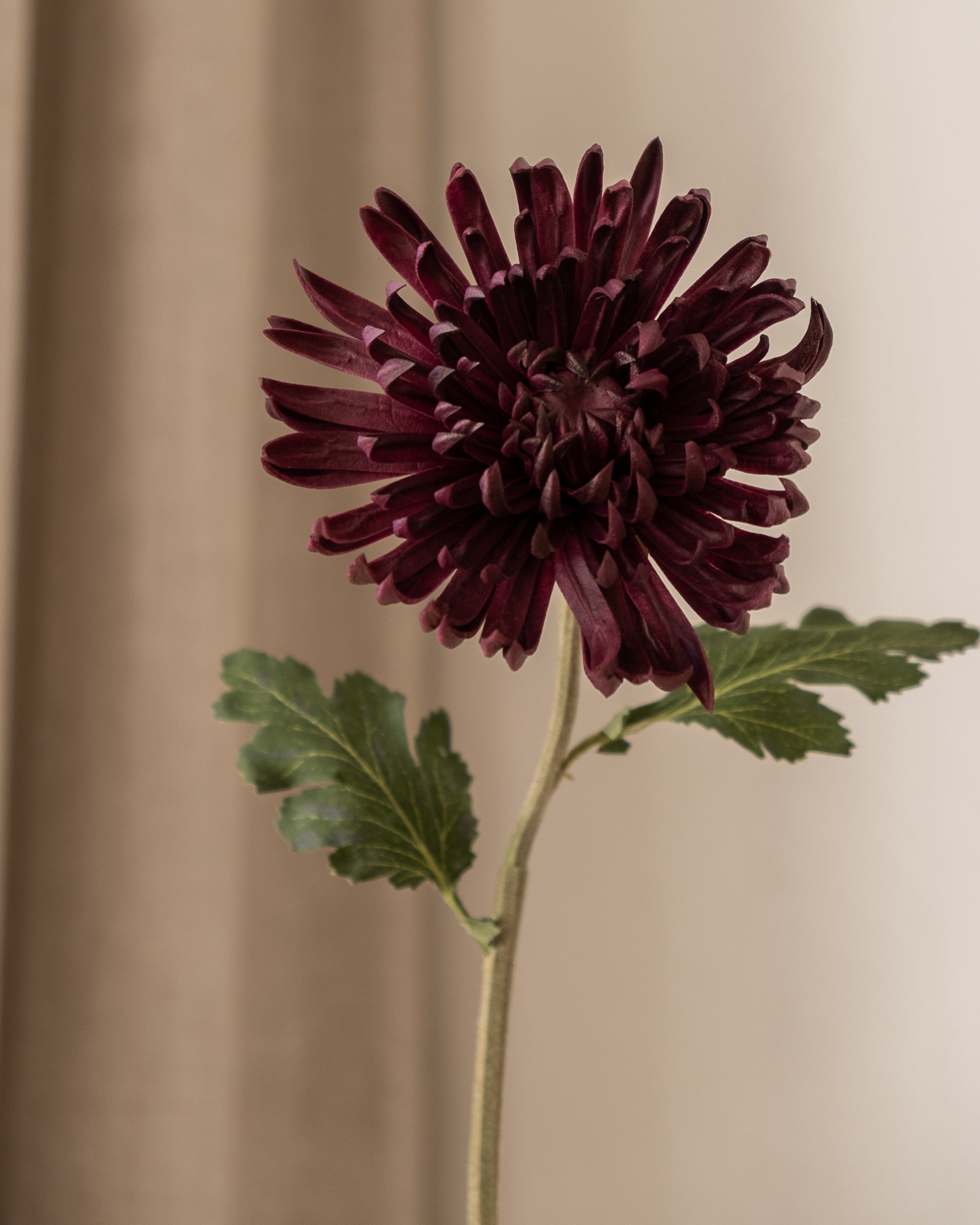 Chrysanthemum er kjent for sin fyldige form og vakre kronblader som åpner seg lag på lag. Denne kunstige varianten på 60 cm tilfører både volum og tekstur, og blir raskt et naturlig midtpunkt i enhver dekorasjon.