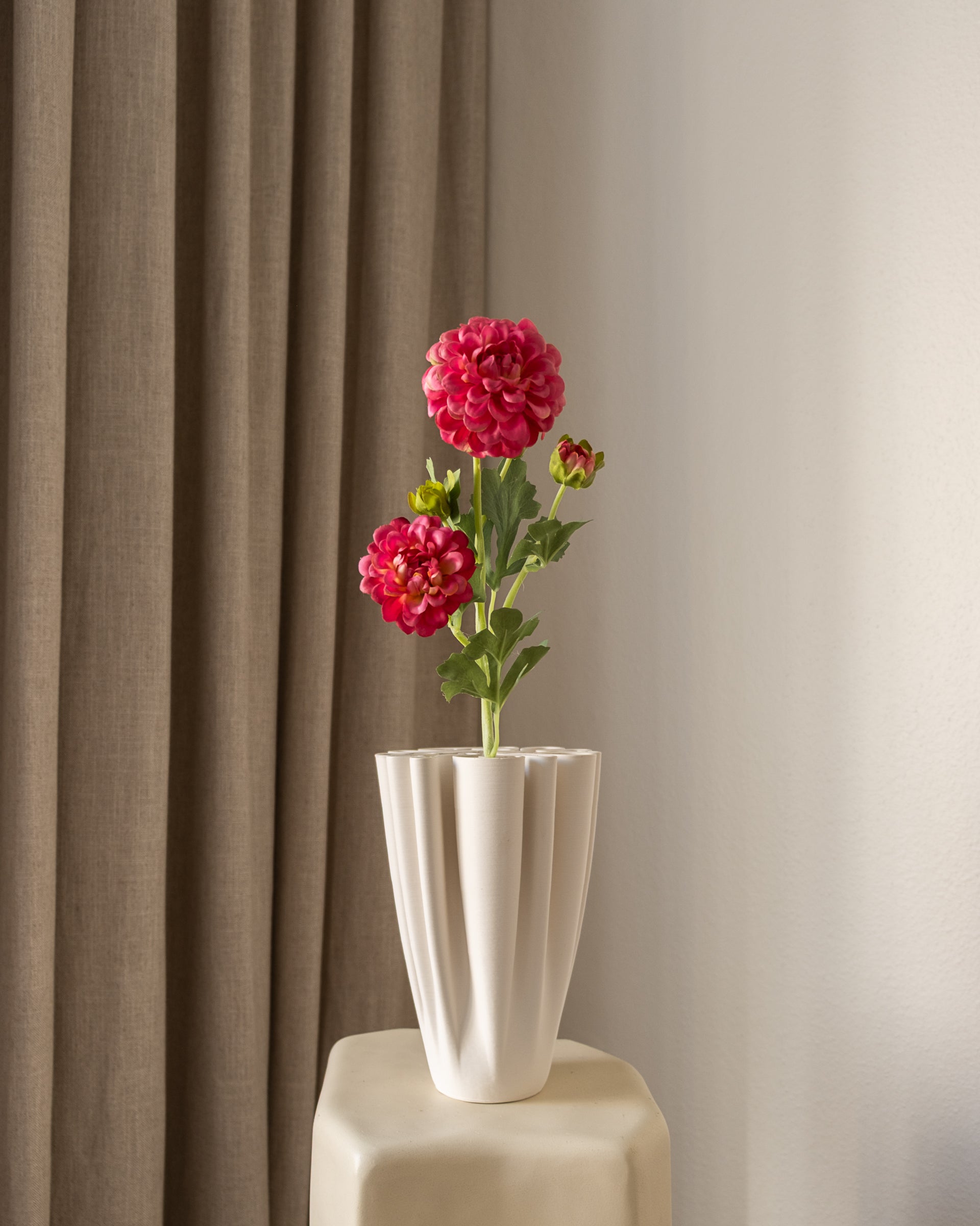 Dahlia Flower er en imponerende og vakker kunstig blomst som tilfører eleganse og farge til ethvert hjem. Med sine detaljerte kronblader og varierte farger, er denne blomsten perfekt for å skape både elegante og subtile innslag i buketter og dekorasjoner. Dahliaens fyldige blomsterhoder gir dybde og tekstur, og den er et tidløst valg for hjemmet ditt.