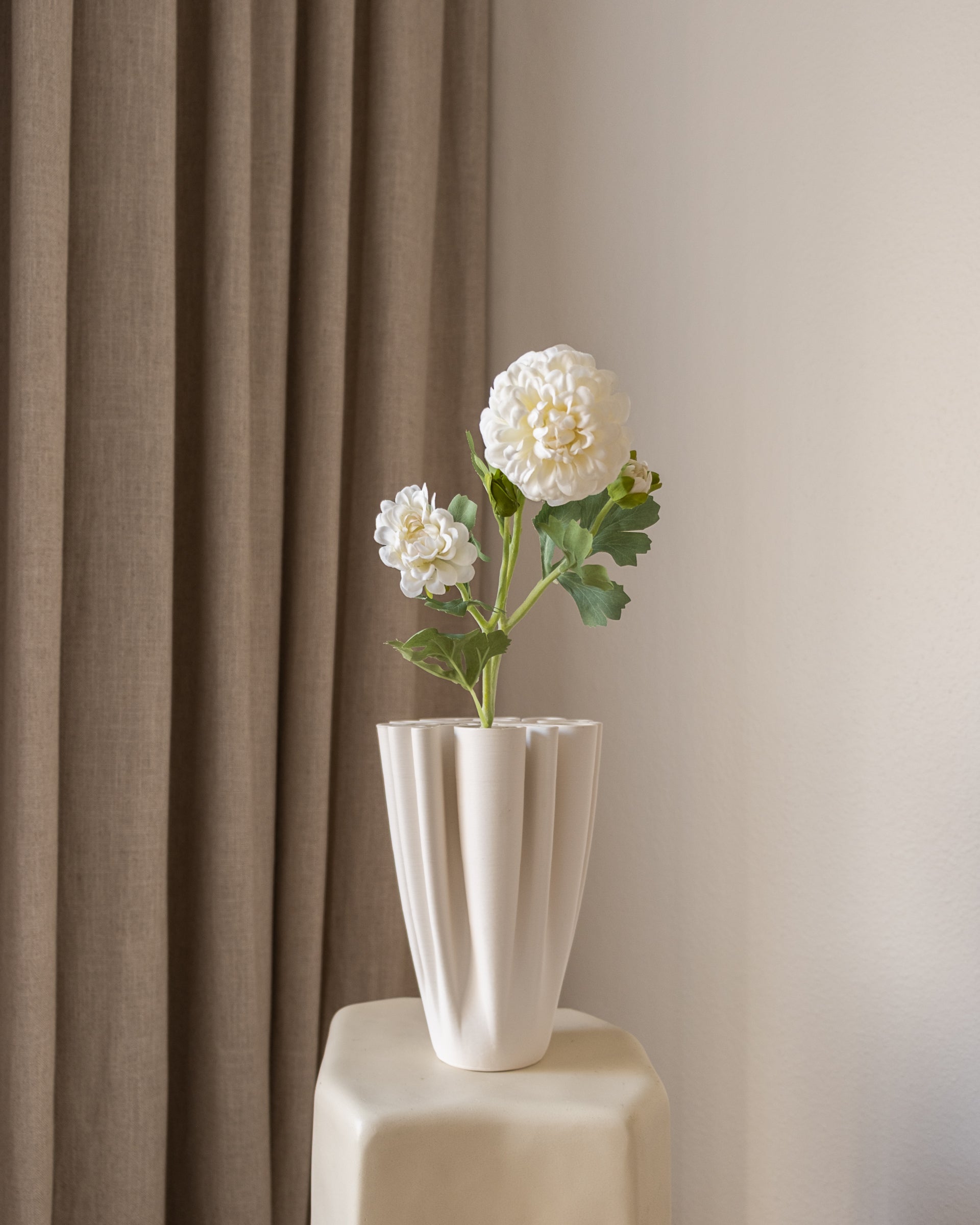 Dahlia Flower er en imponerende og vakker kunstig blomst som tilfører eleganse og farge til ethvert hjem. Med sine detaljerte kronblader og varierte farger, er denne blomsten perfekt for å skape både elegante og subtile innslag i buketter og dekorasjoner. Dahliaens fyldige blomsterhoder gir dybde og tekstur, og den er et tidløst valg for hjemmet ditt.