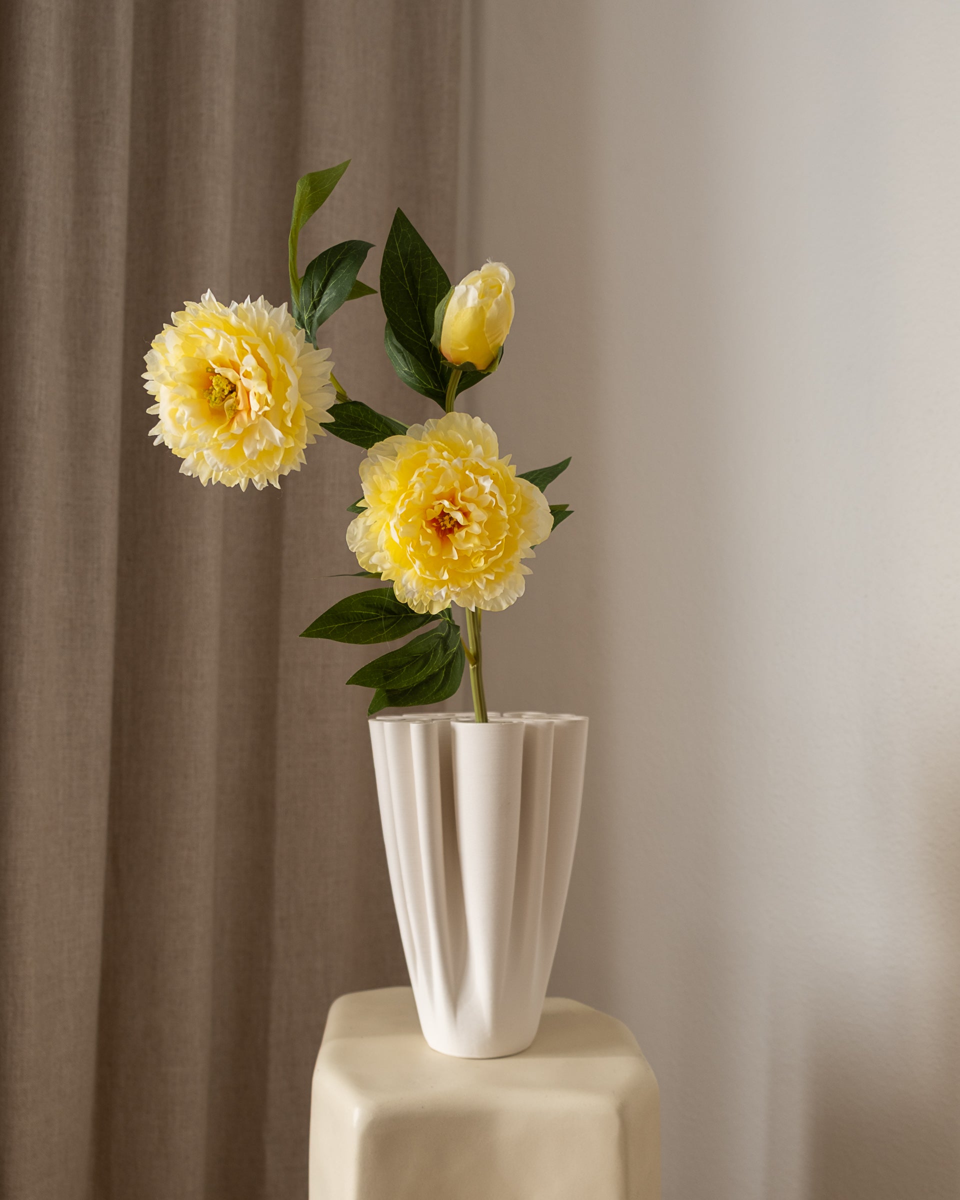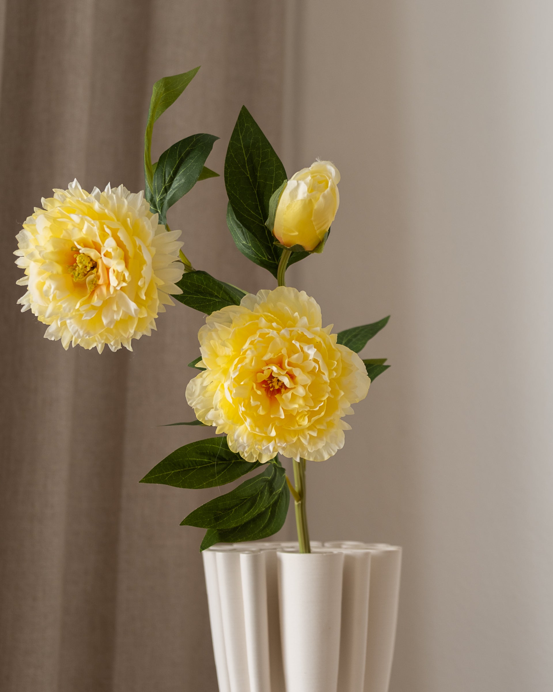 Peoner med 3 hoder er en vakker kunstig blomst laget i silke, som tilfører et sofistikert preg til ethvert rom. Med sine realistiske detaljer og elegante blomsterhoder, er den perfekt for å skape fylde og liv i blomsterarrangementer.