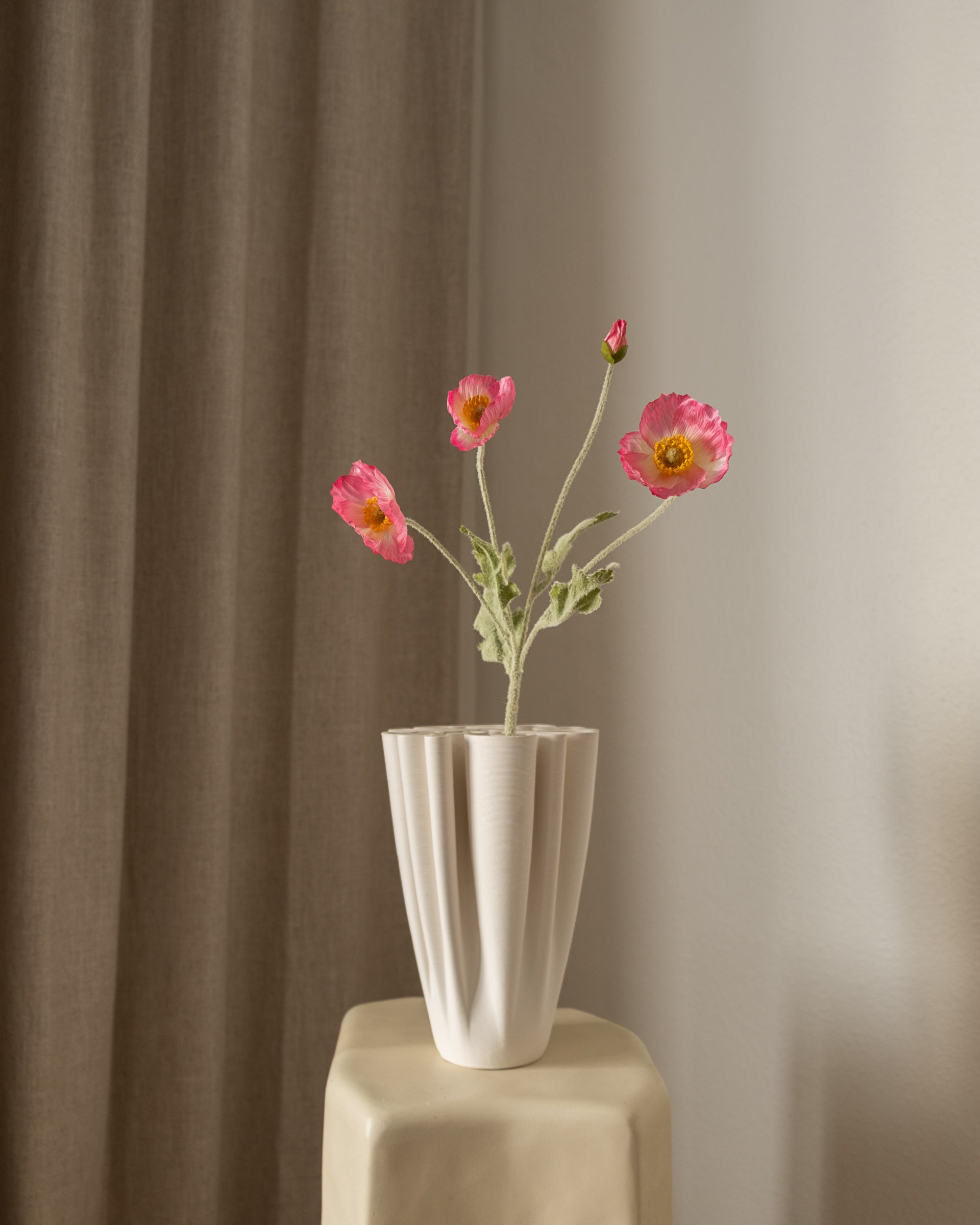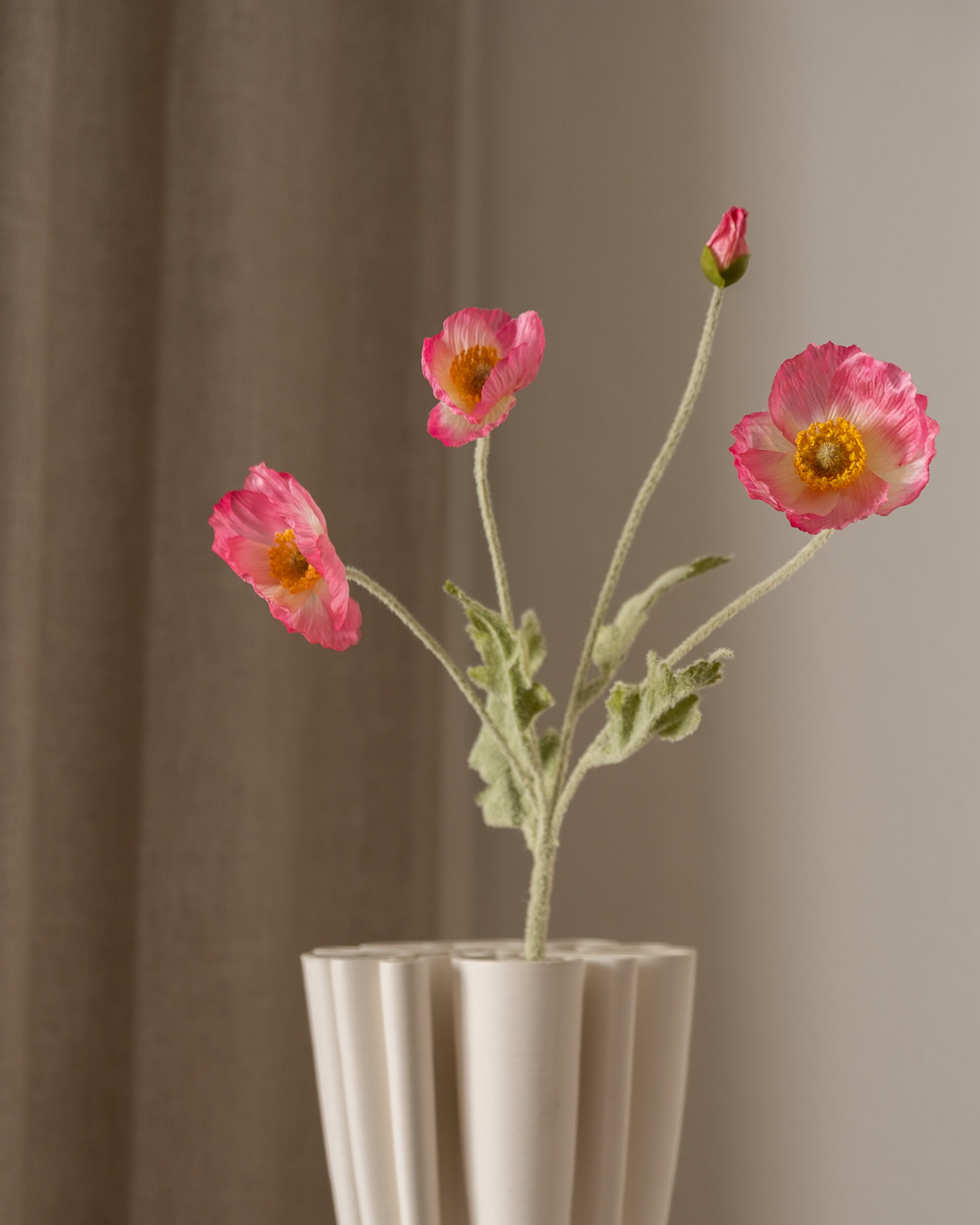 This artificial Poppy Flower features a dramatic and textured design, perfect for making a statement on its own or paired with other flowers to create a unique bouquet. With a height of 56 cm, it adds depth and interest to any arrangement.