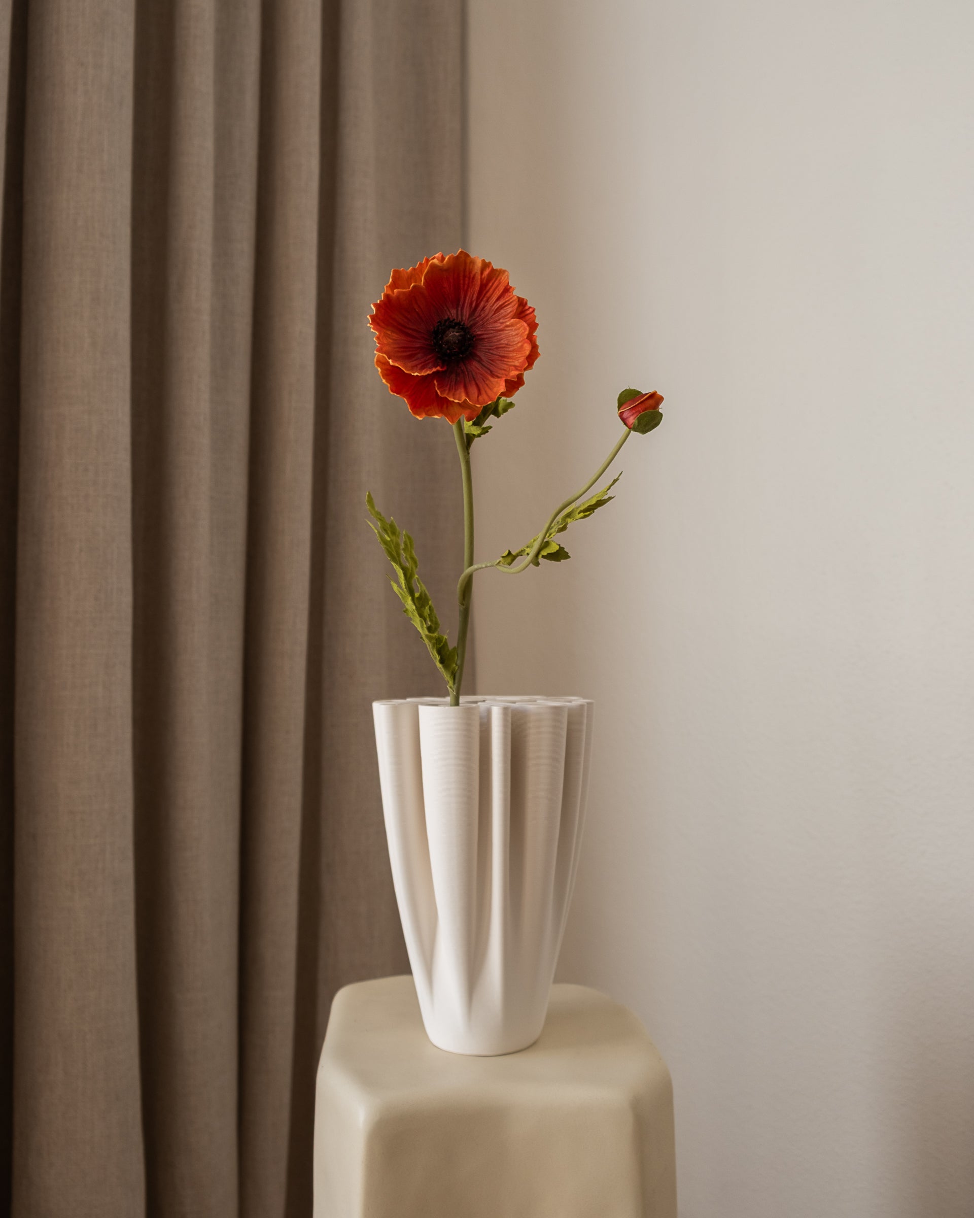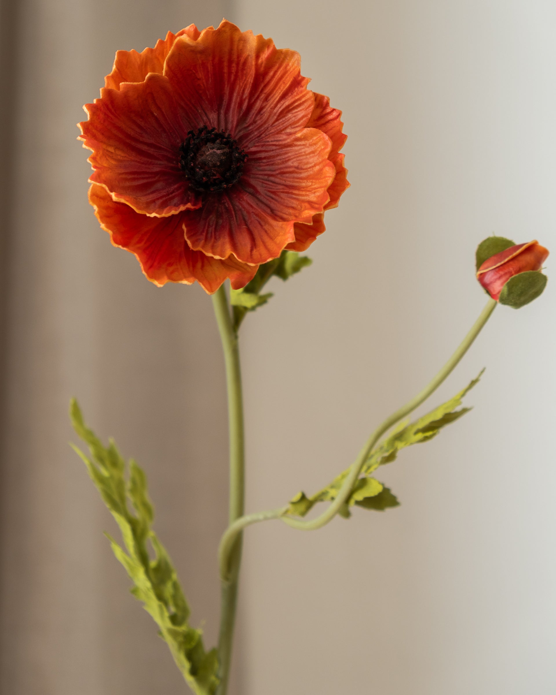 Valmuen er en poetisk blomst med et uttrykk som balanserer mellom det skjøre og det dramatiske. Denne kunstige varianten på 61 cm har en åpen blomst kombinert med små knopper langs stilken, noe som gir et levende og naturlig preg.