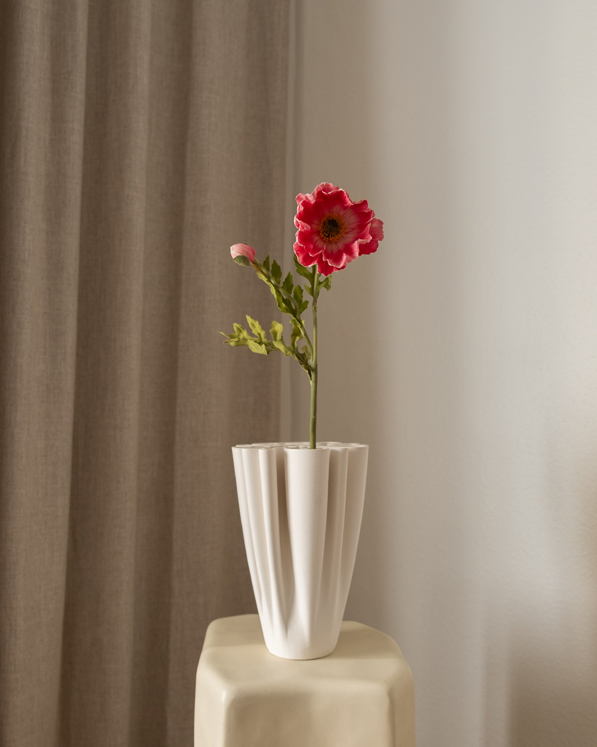 This artificial Poppy Flower features a dramatic and textured design, perfect for making a statement on its own or paired with other flowers to create a unique bouquet. With a height of 63 cm, it adds depth and interest to any arrangement.
