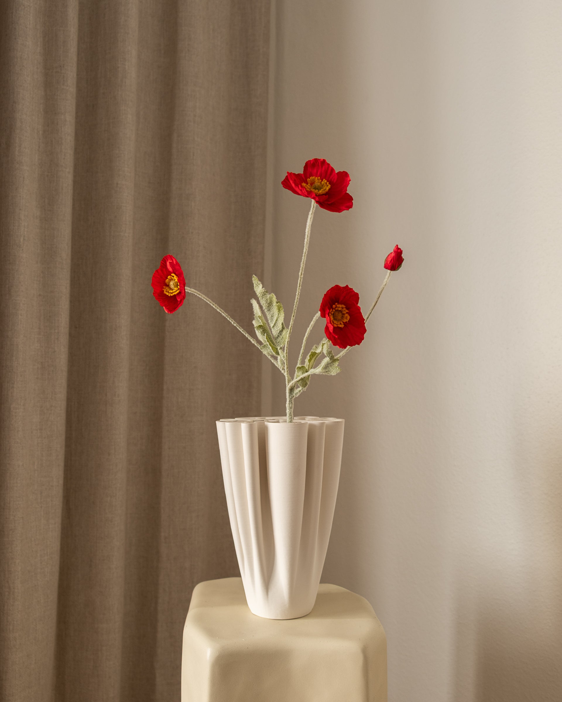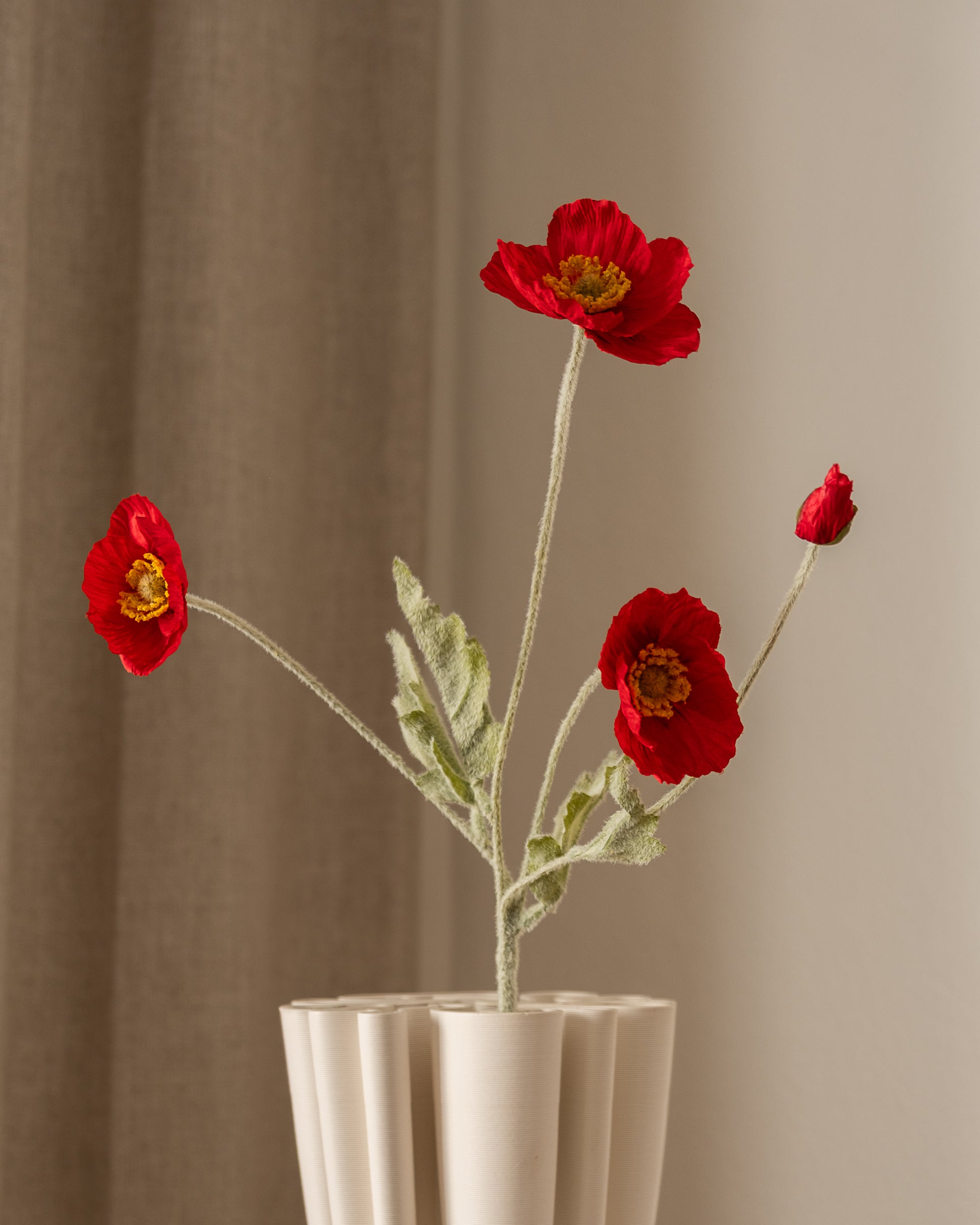 This artificial Poppy Flower features a dramatic and textured design, perfect for making a statement on its own or paired with other flowers to create a unique bouquet. With a height of 56 cm, it adds depth and interest to any arrangement.