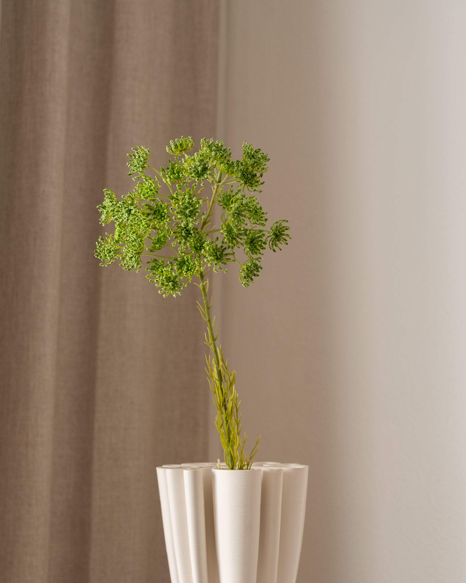 Queen Anne's Lace Flower er en elegant kunstig blomst som tilfører en delikat og naturlig touch til enhver dekorasjon. Med sine fine, grønne blomster og realistiske detaljer, er denne blomsten perfekt for å legge til fylde og tekstur i buketter og arrangementer.