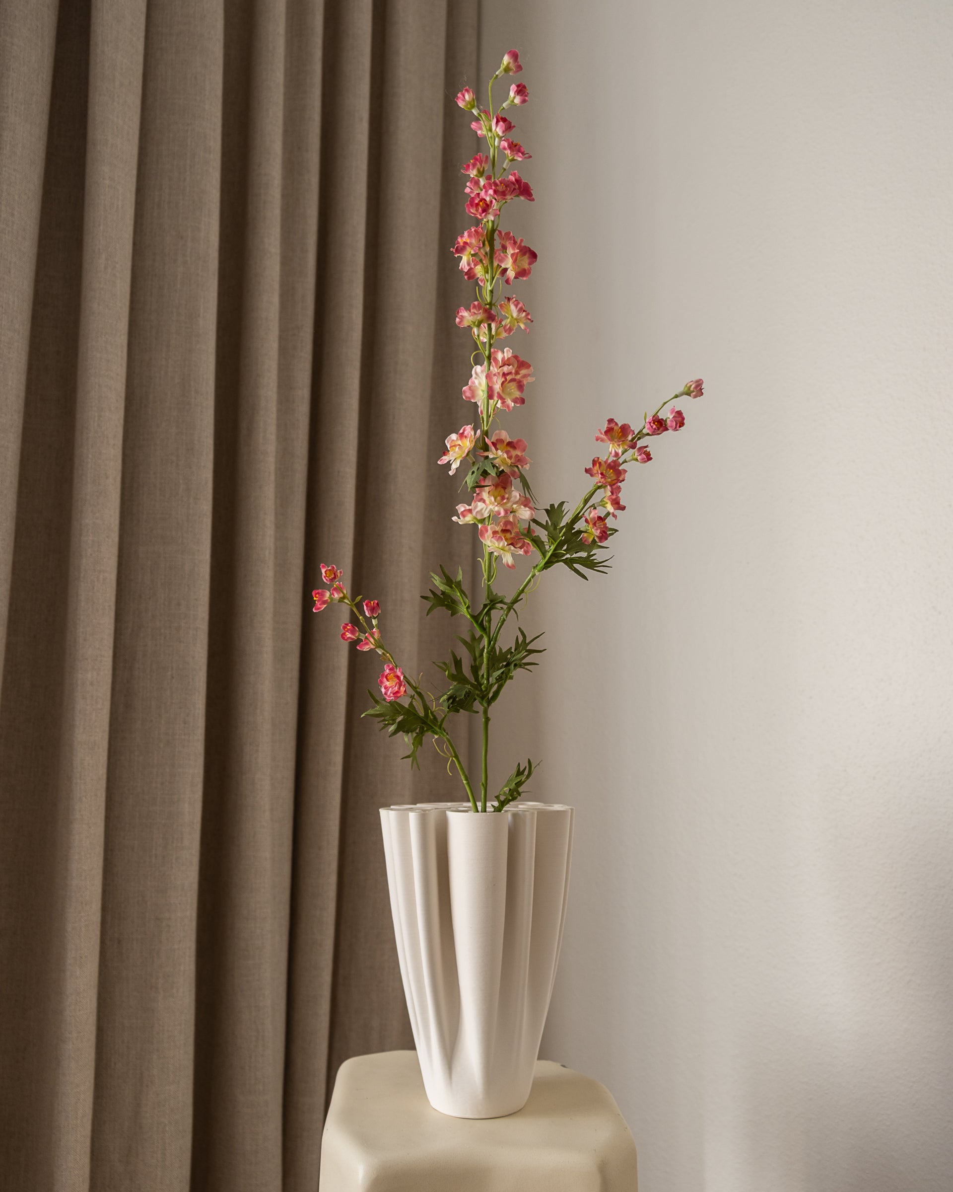 This artificial Delphinium flower features an elegant and sophisticated design, perfect for making a refined statement on its own or combined with other flowers to create a unique bouquet. With a height of 86 cm, it adds an exquisite touch to any arrangement.