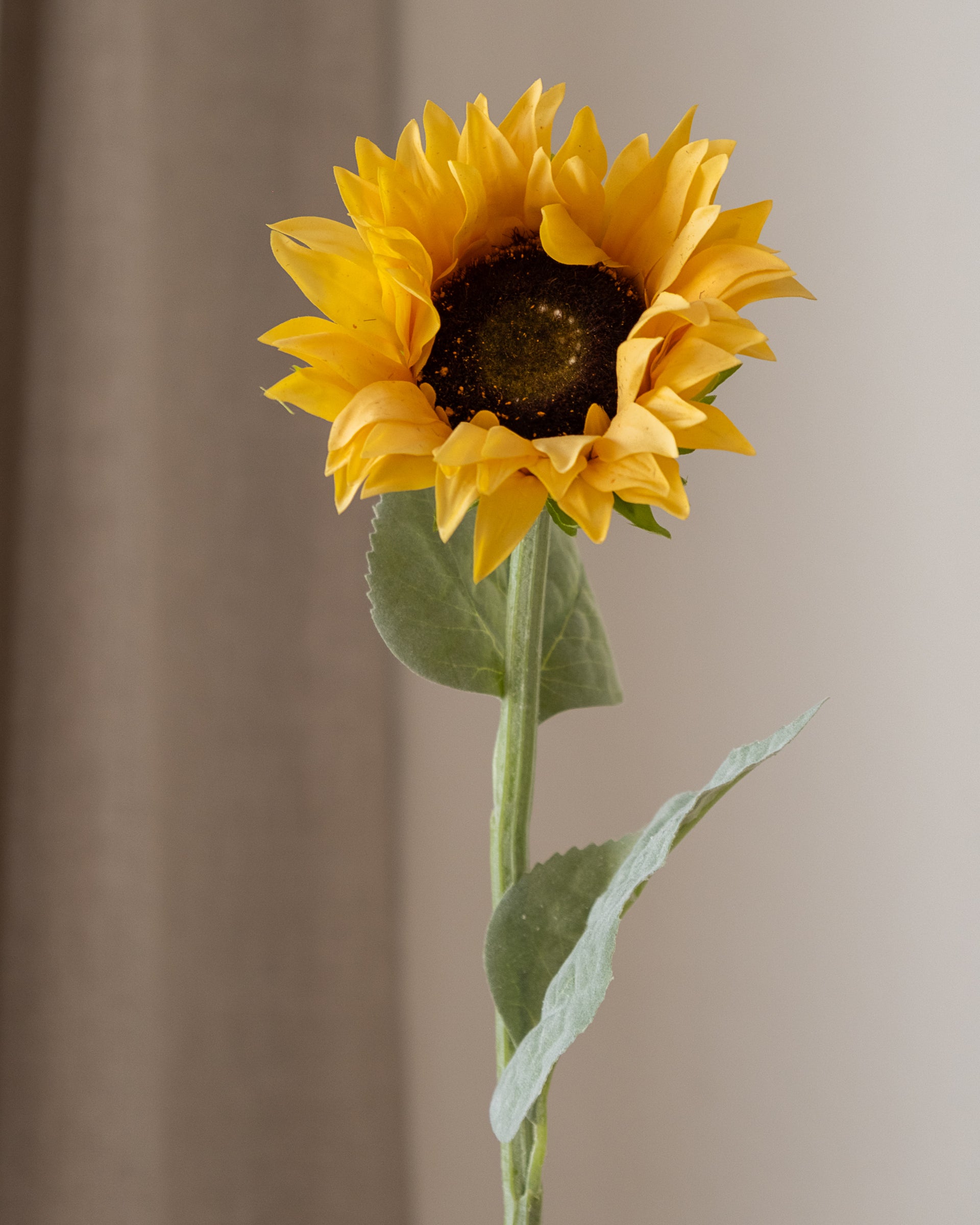 This artificial Sunflower features a warm and authentic design, perfect for making a statement on its own or paired with other flowers to create a unique bouquet. With a height of 60 cm, it adds a vibrant and welcoming touch to any arrangement.