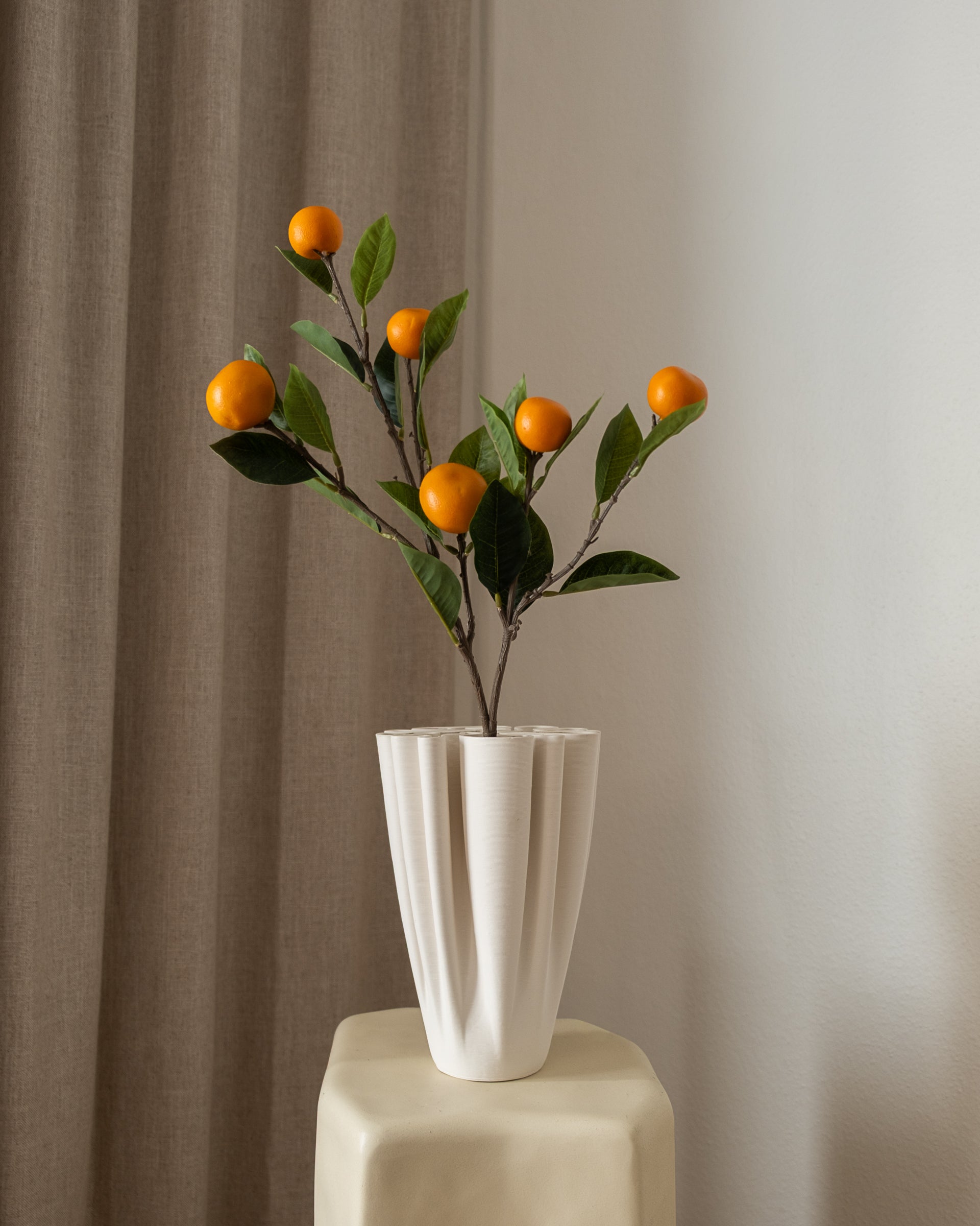 Add a fresh and colorful touch with our artificial orange tree branch. Featuring realistic oranges and detailed leaves, this branch brings a natural feel to bouquets and décor, perfect for brightening up any room.