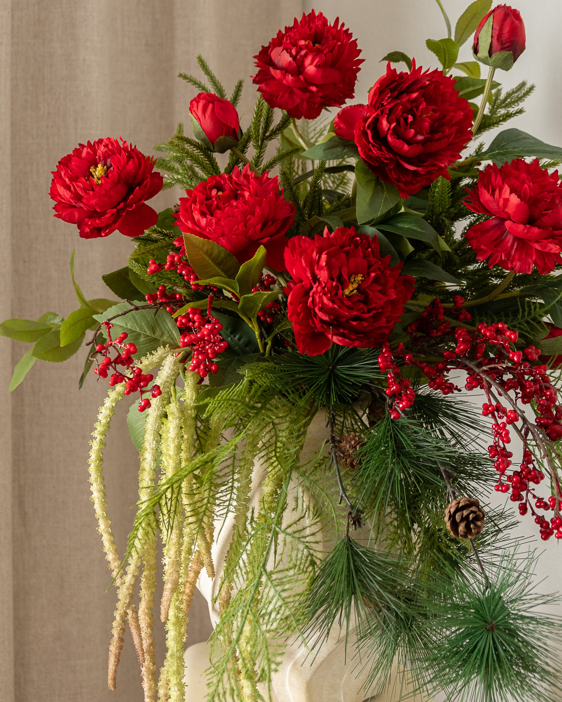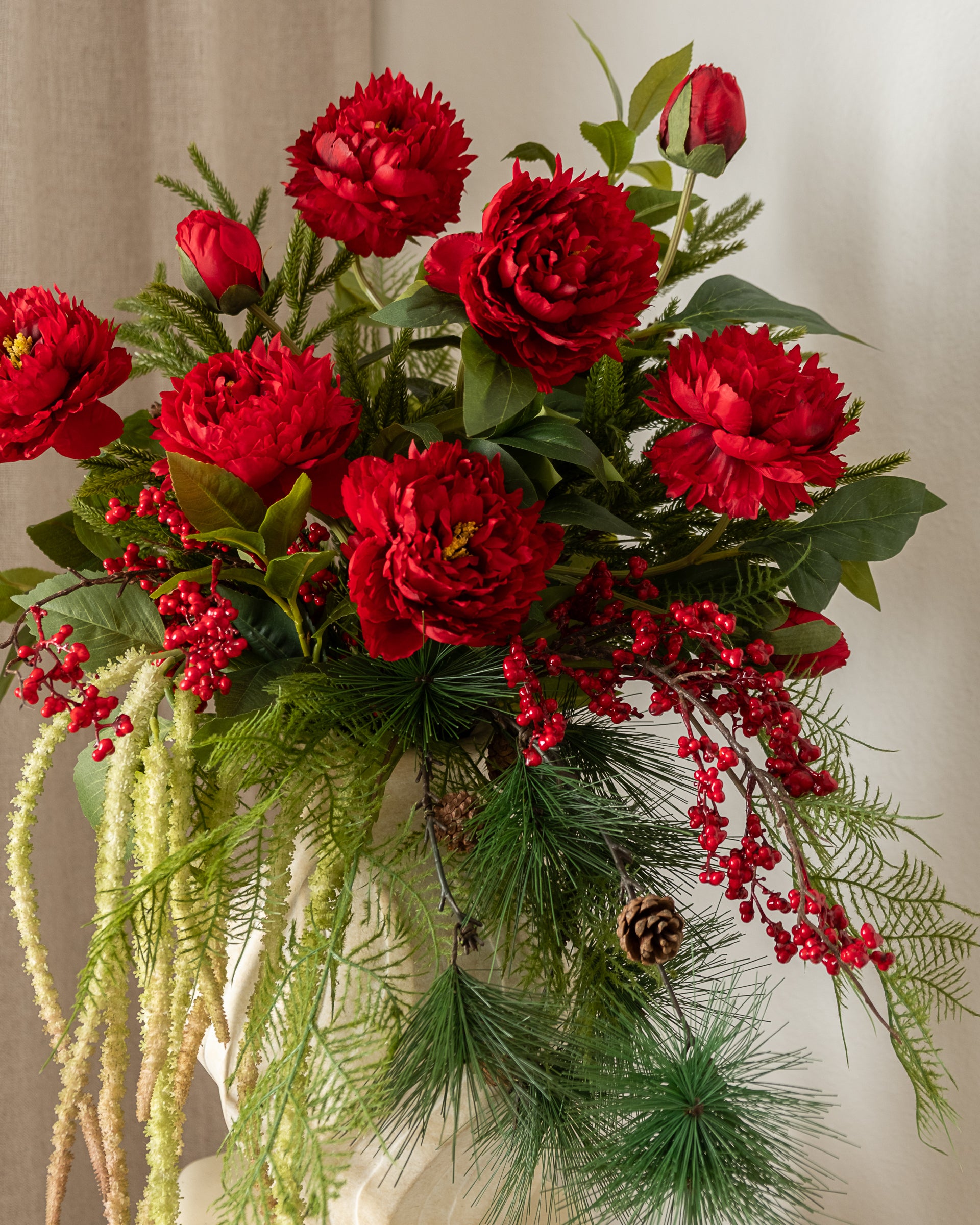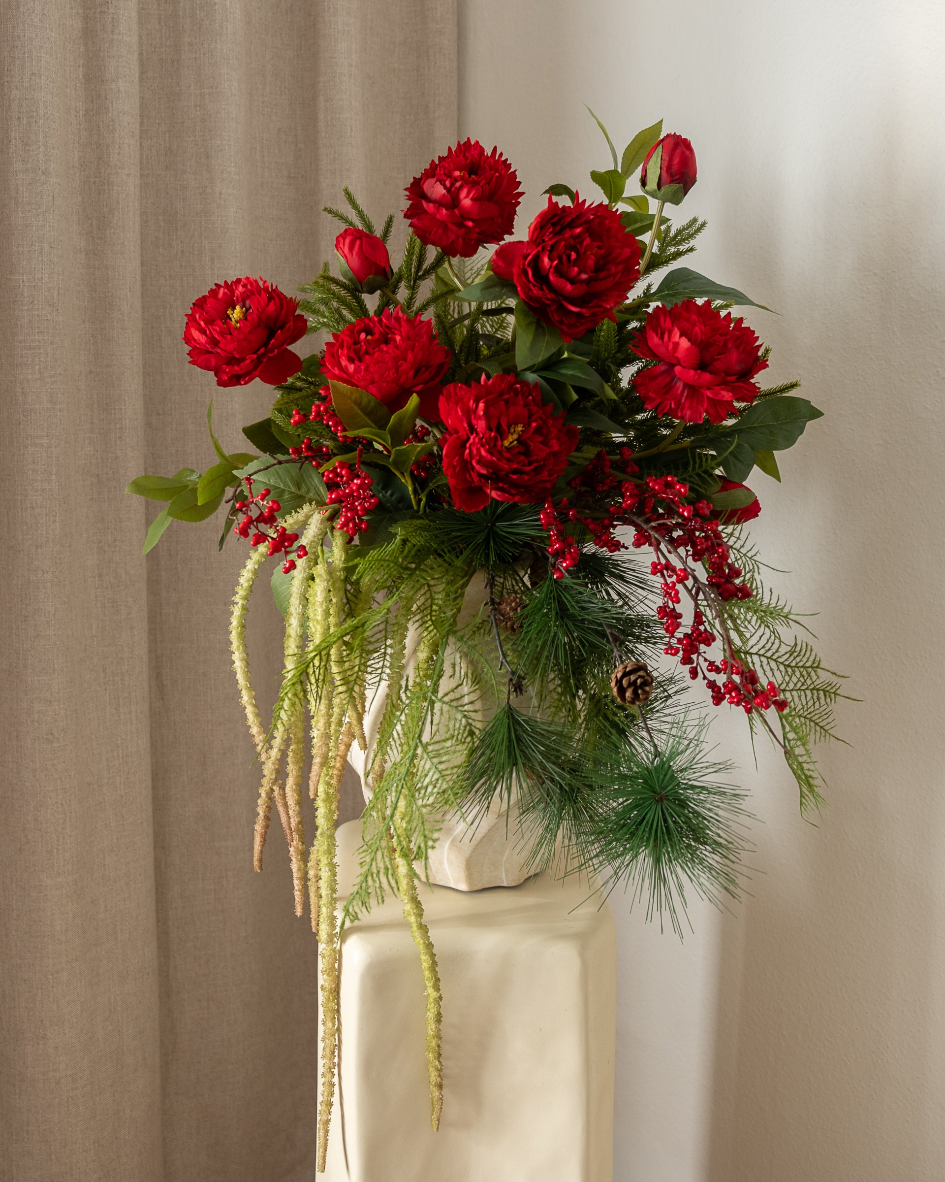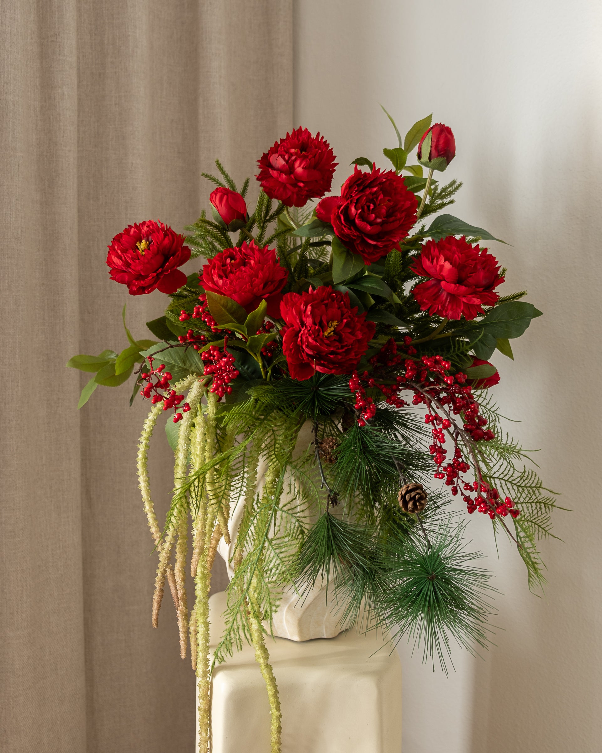 Christmas Cheer Bouquet sprer en varm og innbydende stemning med klassiske juletoner og et elegant uttrykk. En tidløs favoritt som kombinerer tradisjon og moderne blomsterdesign.