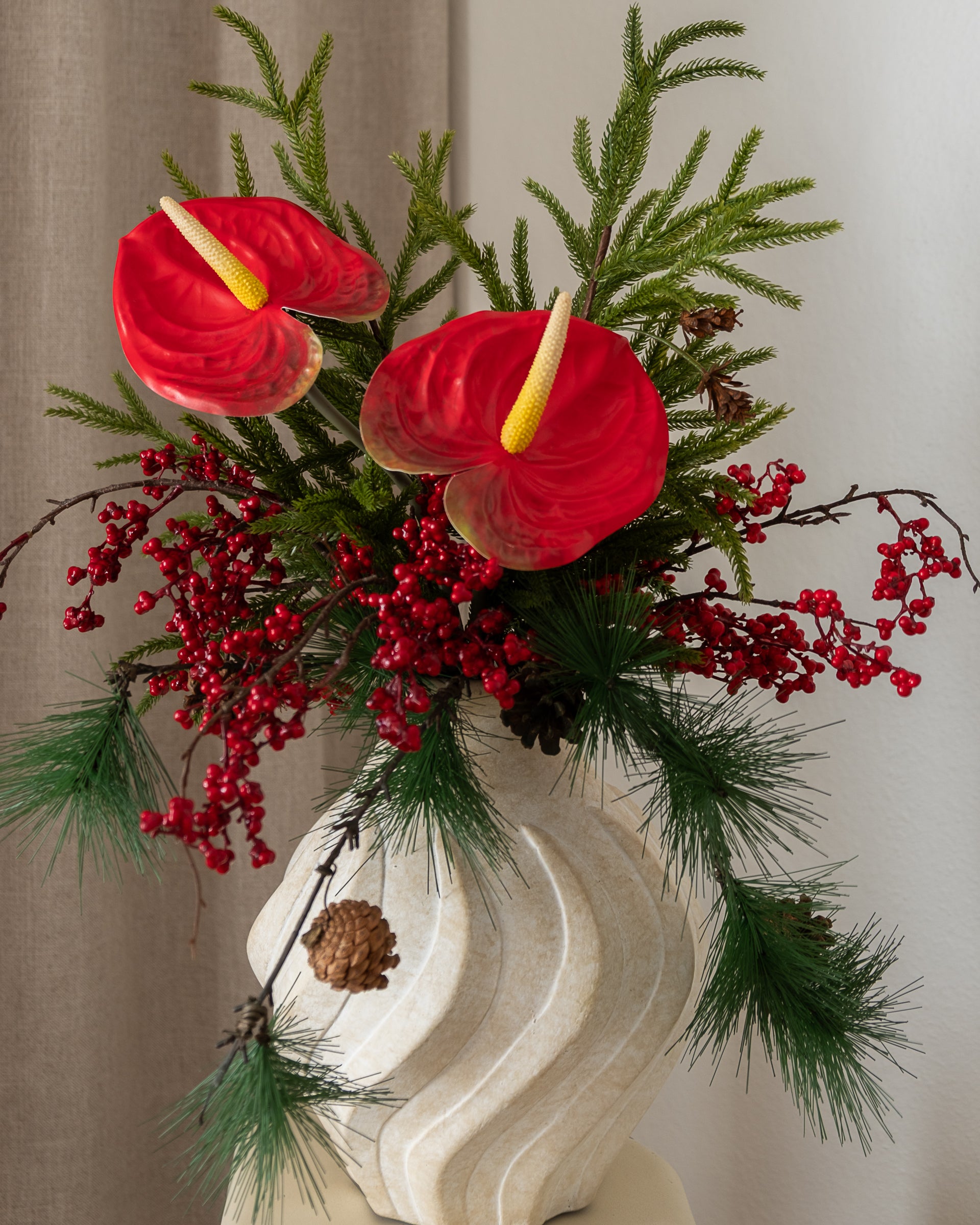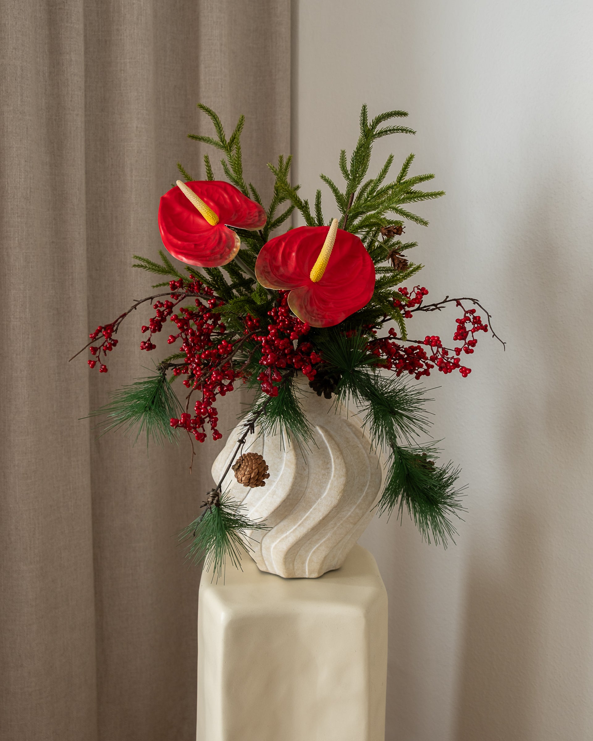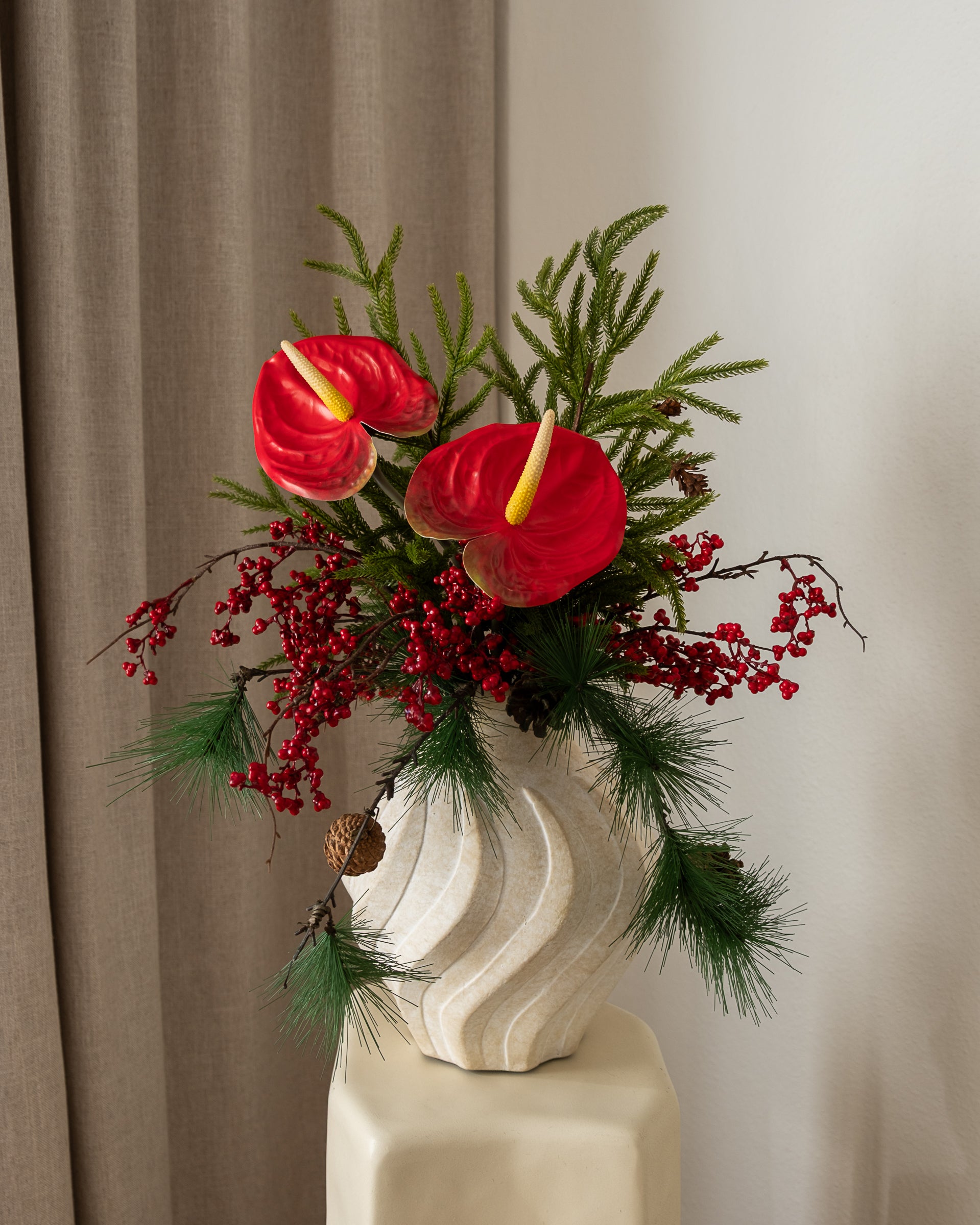 Winter Flame Bouquet har et elegant og moderne uttrykk med varme nyanser som fanger vinterens glød. En sofistikert bukett som skaper stemning og tilstedeværelse gjennom sesongen.