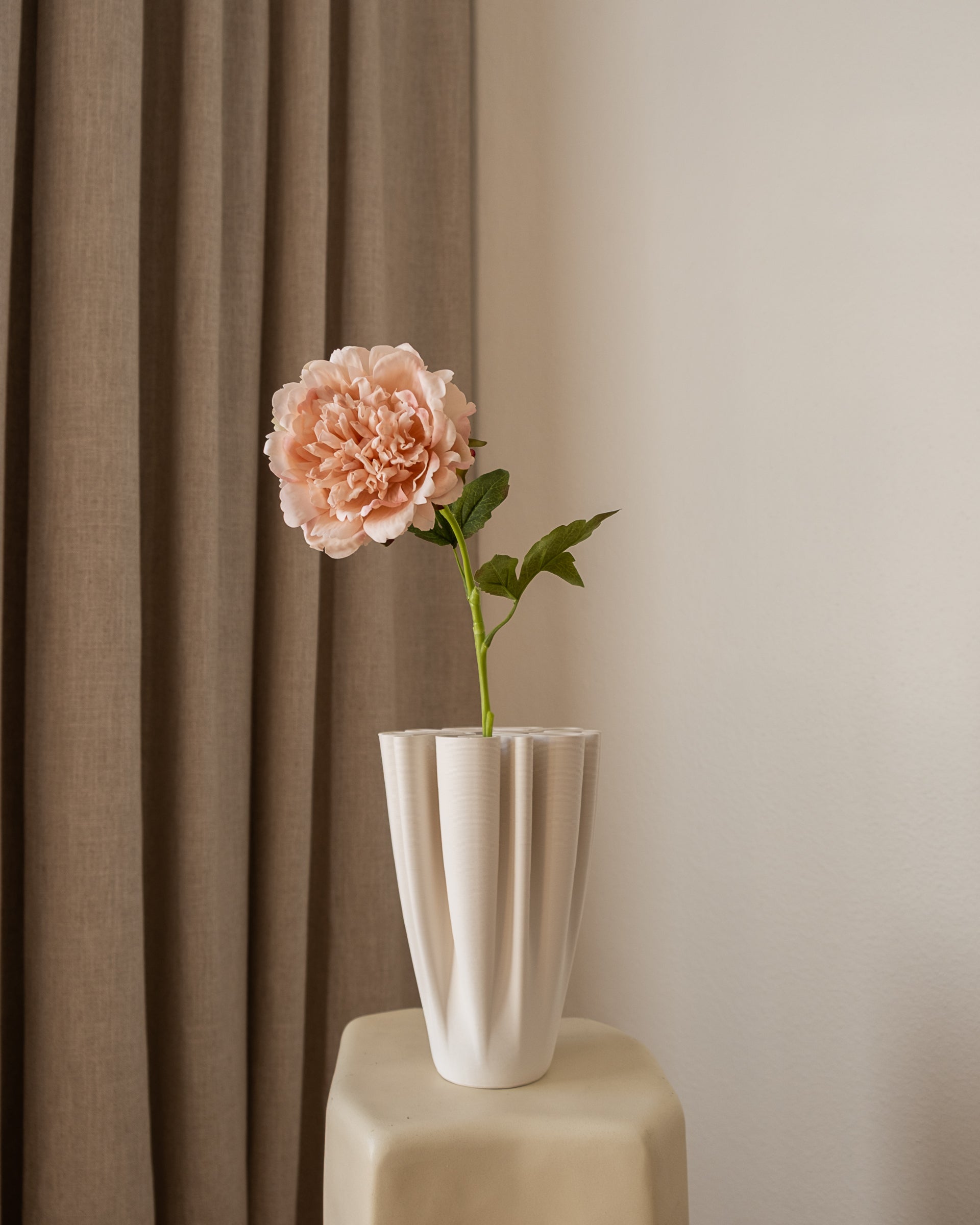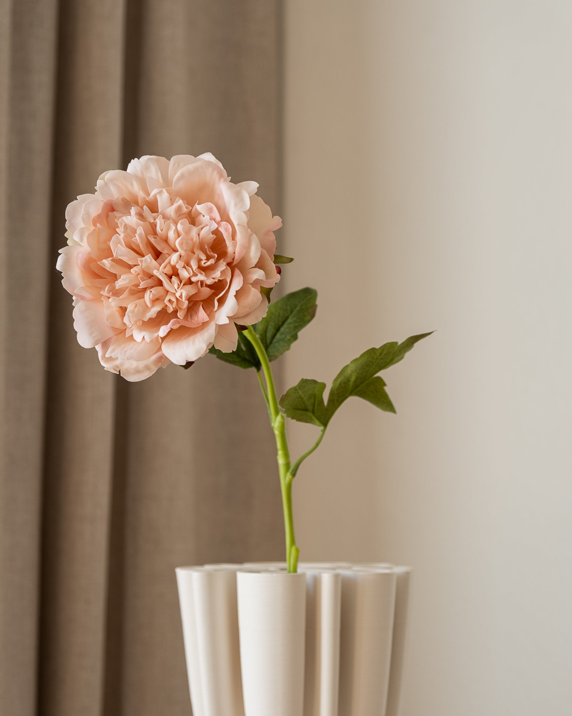 Pionen er kjent som en av de mest romantiske og luksuriøse blomstene. Denne kunstige varianten har et stort og fyldig blomsterhode med myke kronblader som gir et naturlig og sofistikert uttrykk. Den passer perfekt alene i en vase som et blikkfang, eller som en elegant del av en frodig bukett.