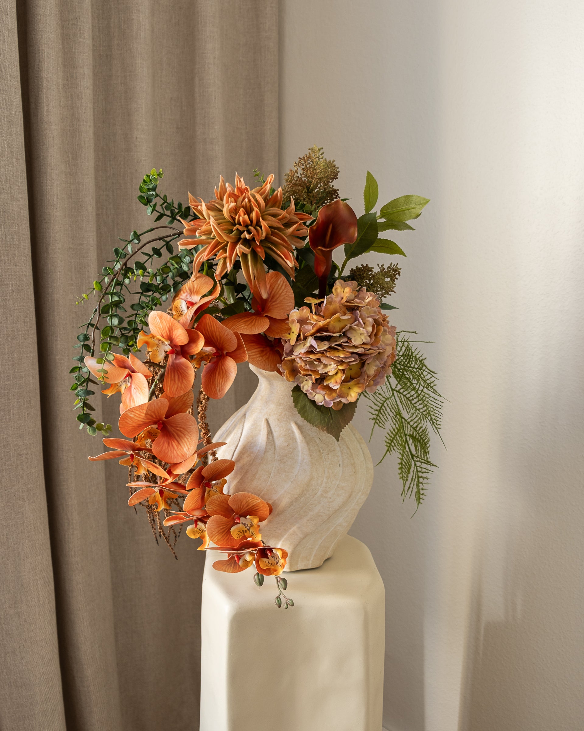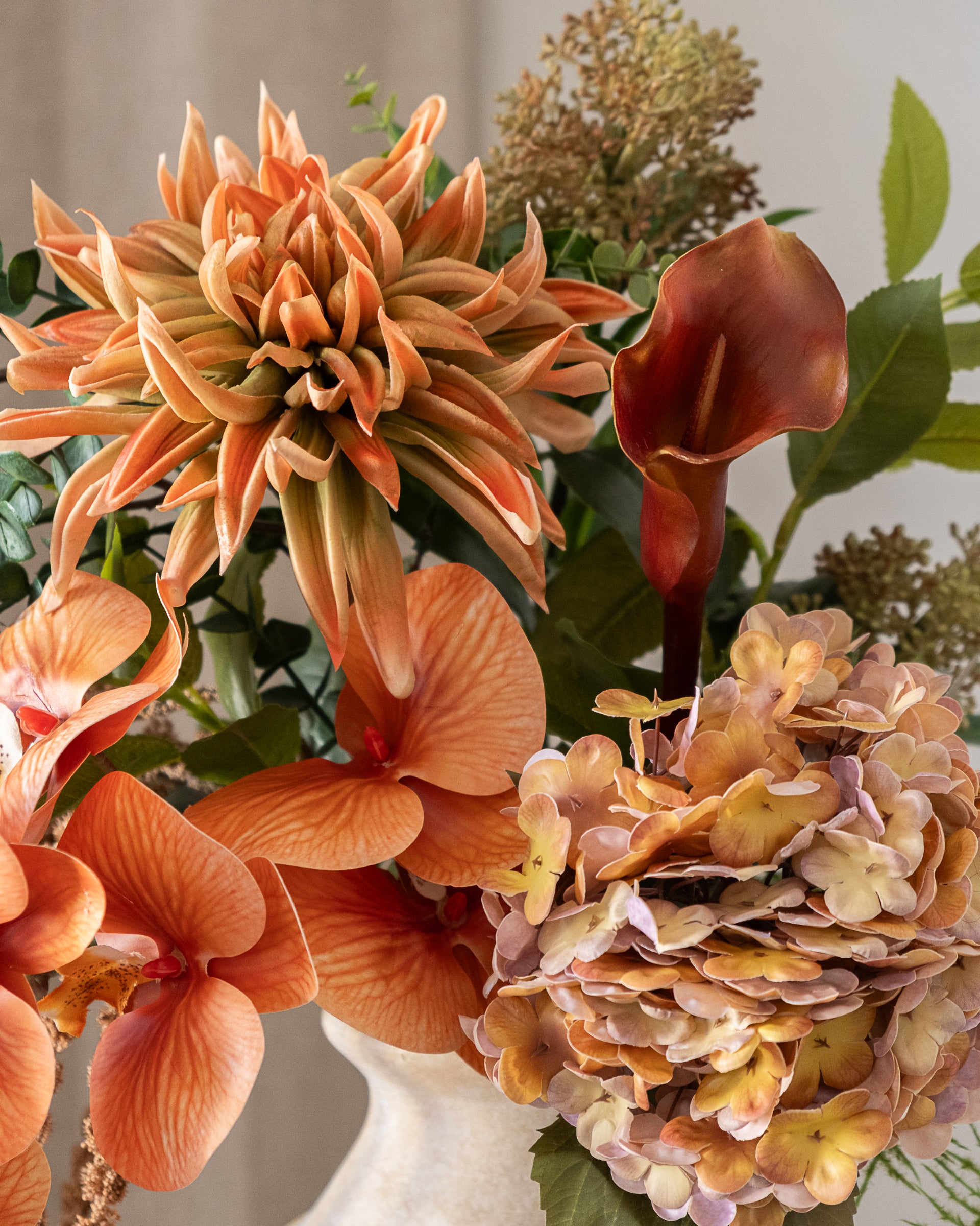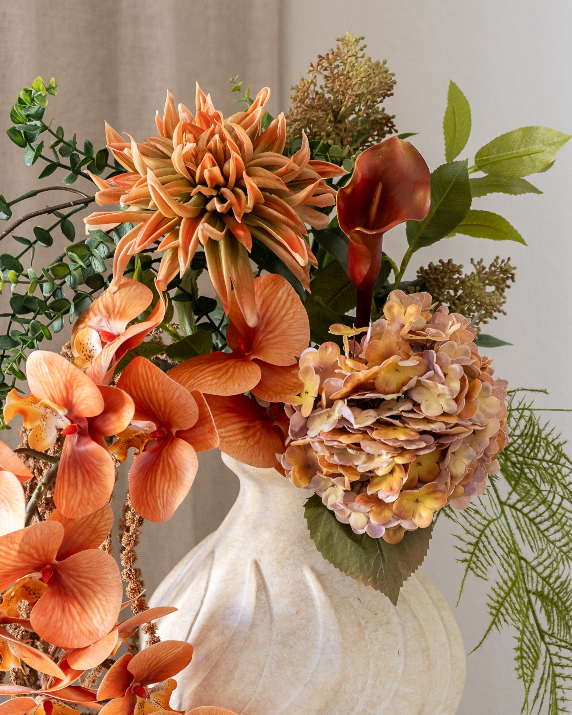 Tangerine Bloom Bouquet har en livlig og energisk komposisjon med et eksotisk preg. De sterke fargetonene skaper en frisk og leken atmosfære som gir rommet et løft.