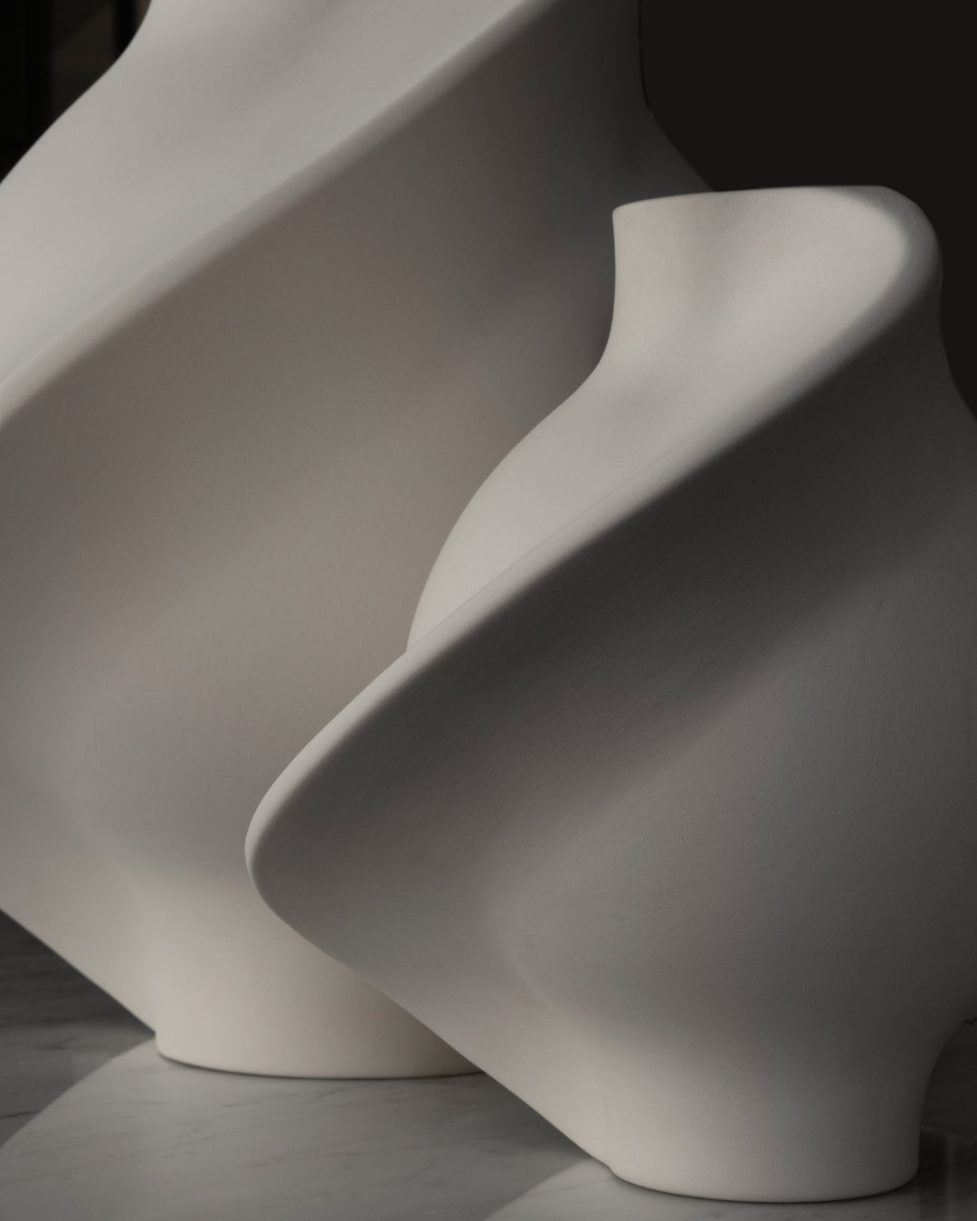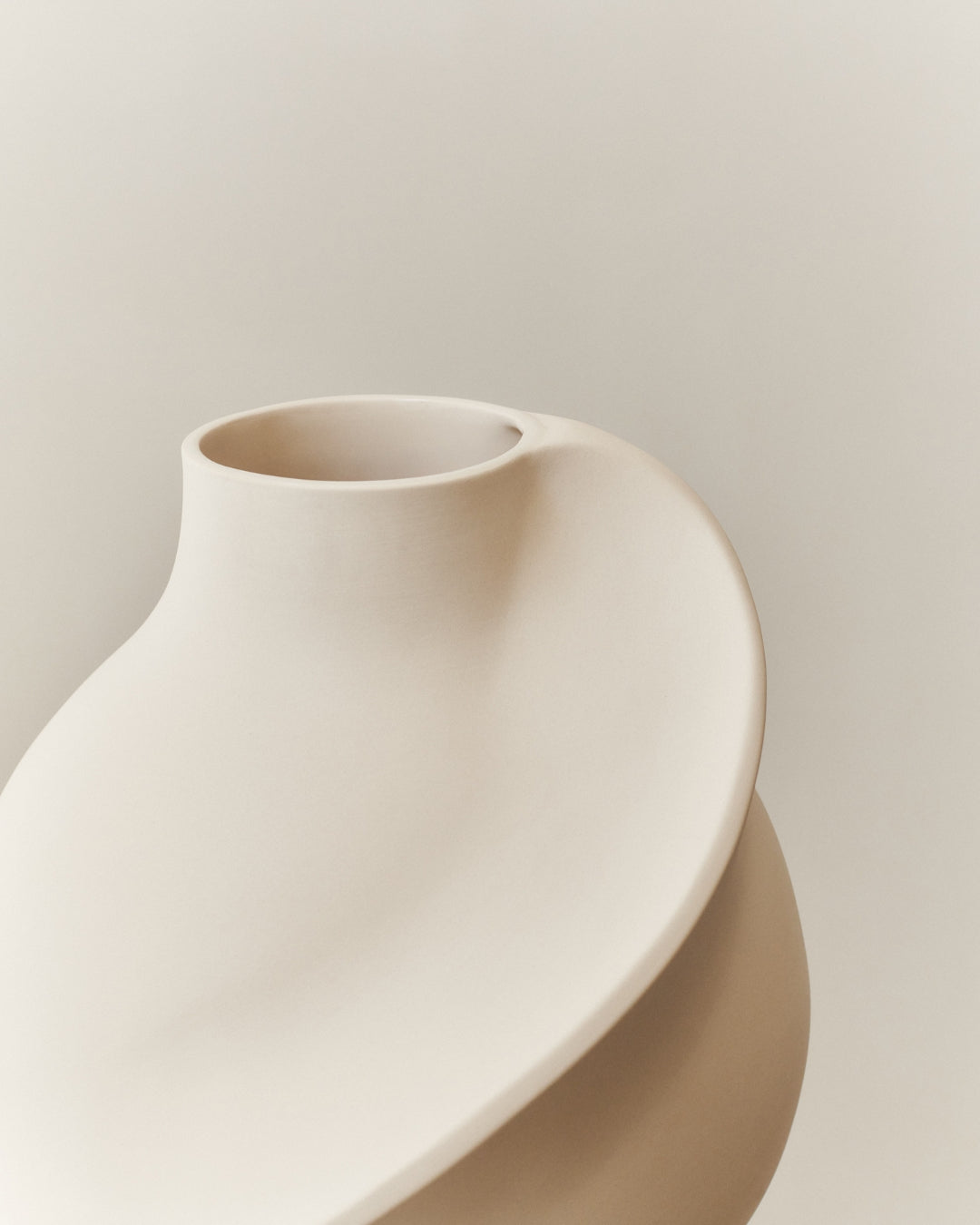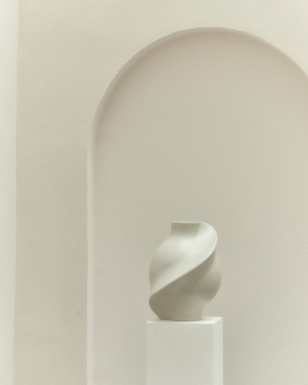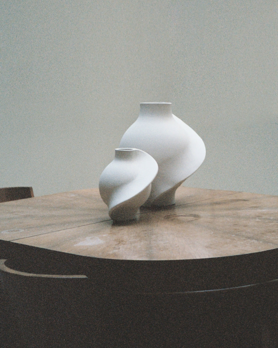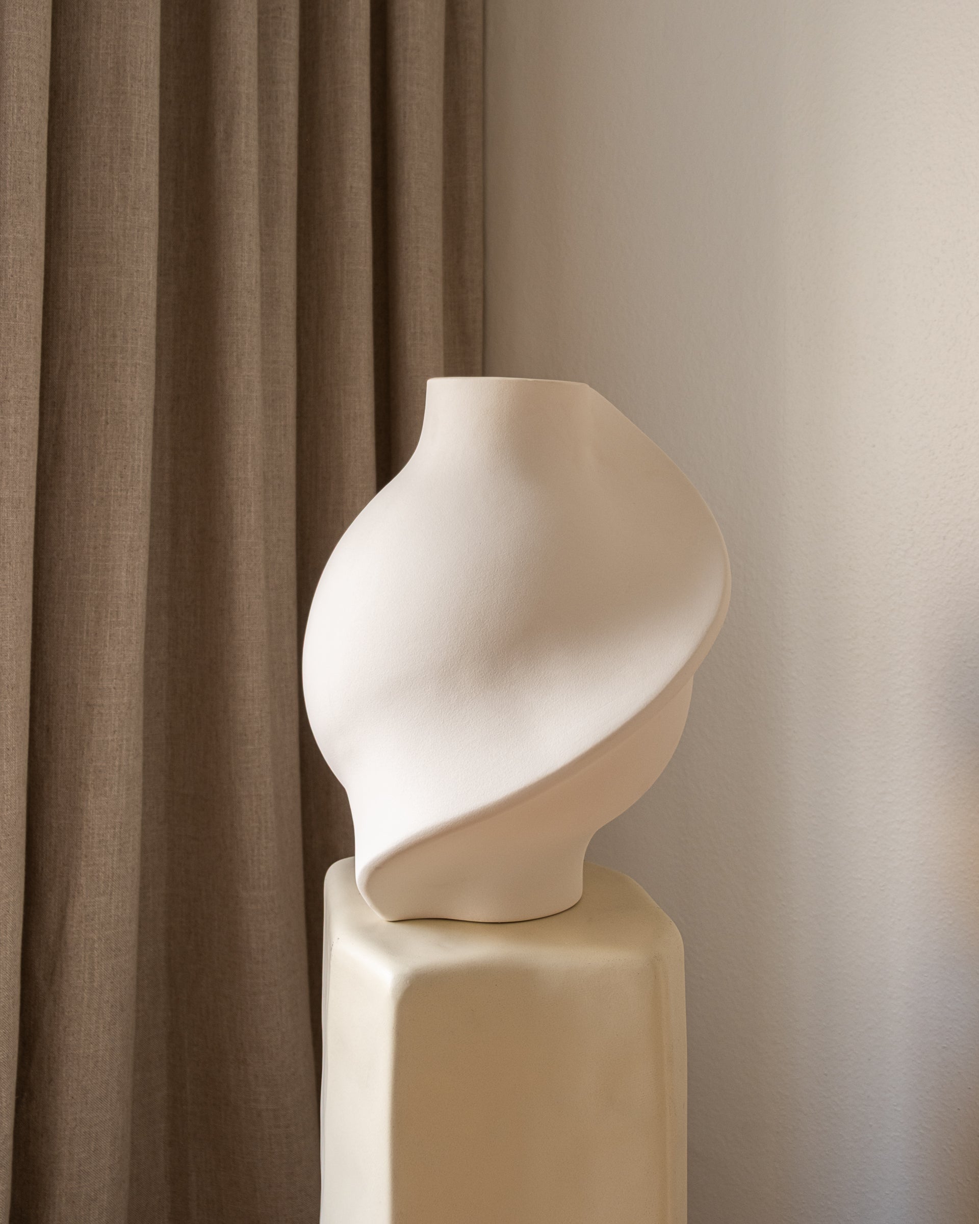 Pirout Vase fra Louise Roe med organiske linjer og elegant form, skaper et imponerende blikkfang enten den står alene eller brukes til å fremheve enkeltblomster eller en nydelig bukett. Vasen har en flytende, bølgende silhuett som gir en følelse av bevegelse og tidløs eleganse.
