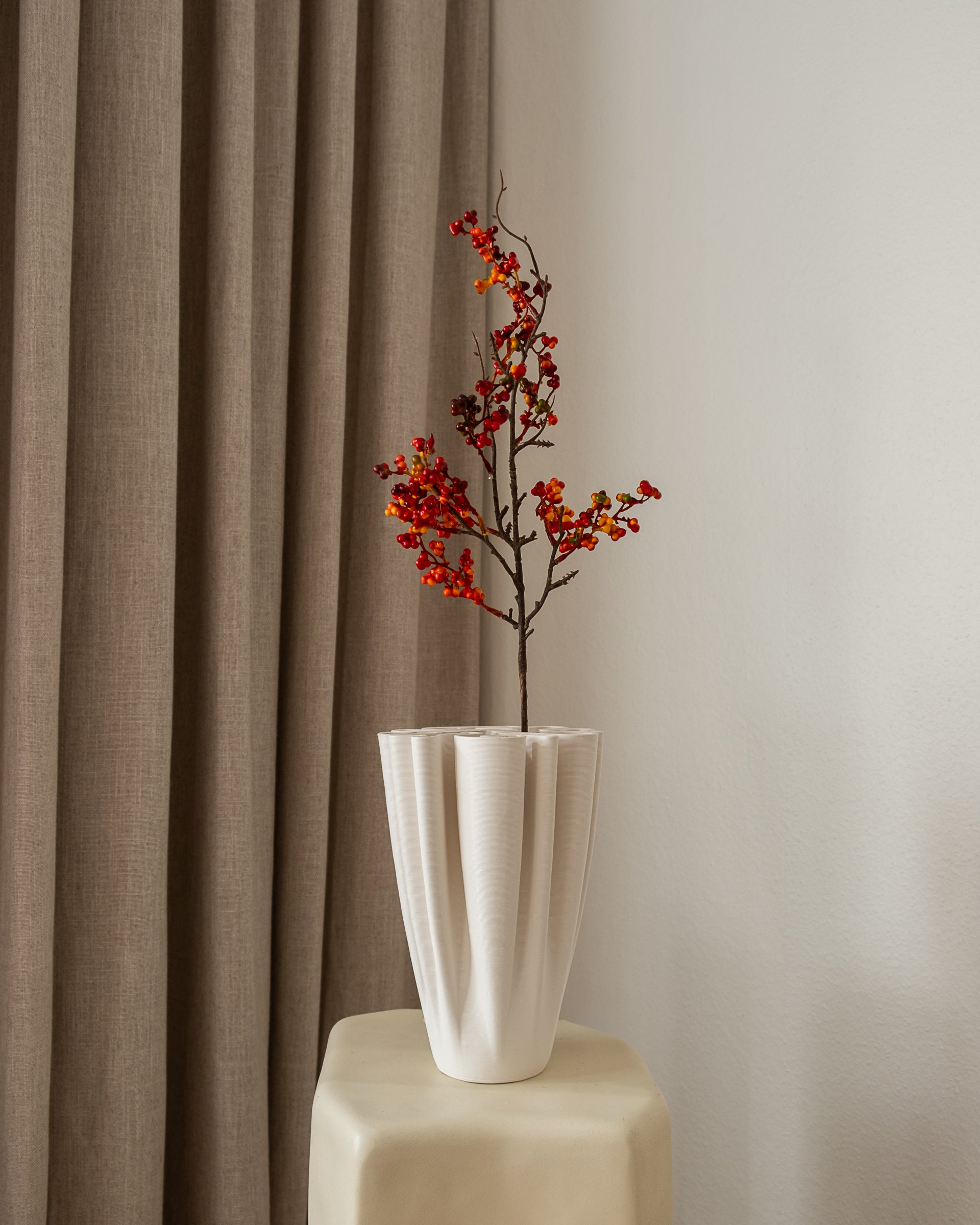 Med en høyde på 65 cm er grenen enkel å bruke både alene og i kombinasjon med andre blomster. Stilken kan klippes med tang eller bøyes for fleksibilitet, slik at den lett kan tilpasses ønsket høyde og form. En tidløs gren som tilfører liv, varme og karakter – året rundt.